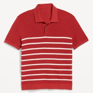Short-Sleeve Sweater-Knit Polo: spread collar, short sleeves, buttoned placket, pullover style, #802042