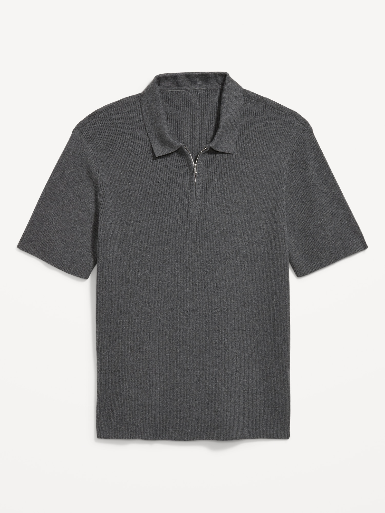 Short-Sleeve Sweater-Knit Polo: spread collar, short sleeves, buttoned placket, pullover style, #802042