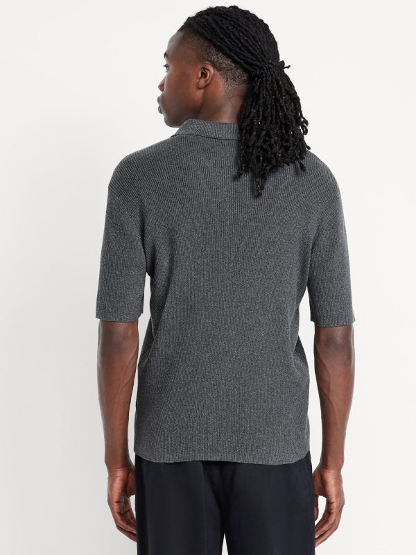 Short-Sleeve Sweater-Knit Polo: spread collar, short sleeves, buttoned placket, pullover style, #802042