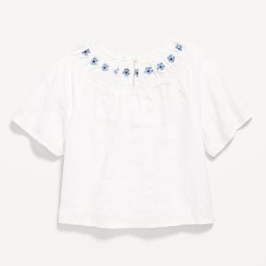 Short-Sleeve Textured Embroidered Top for Girls