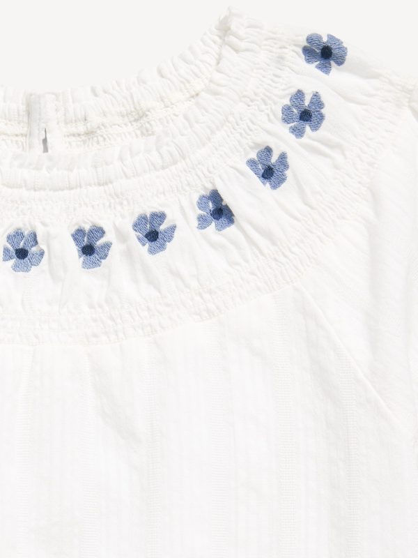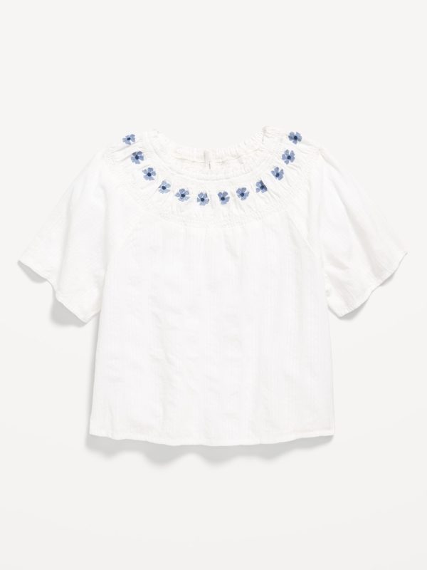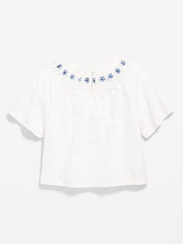 Short-Sleeve Textured Embroidered Top for Girls