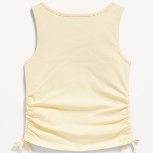 Side-Ruched Tank Top for Girls: scoop neckline, sleeveless, ruching at sides, decorative ties at each side, #766963