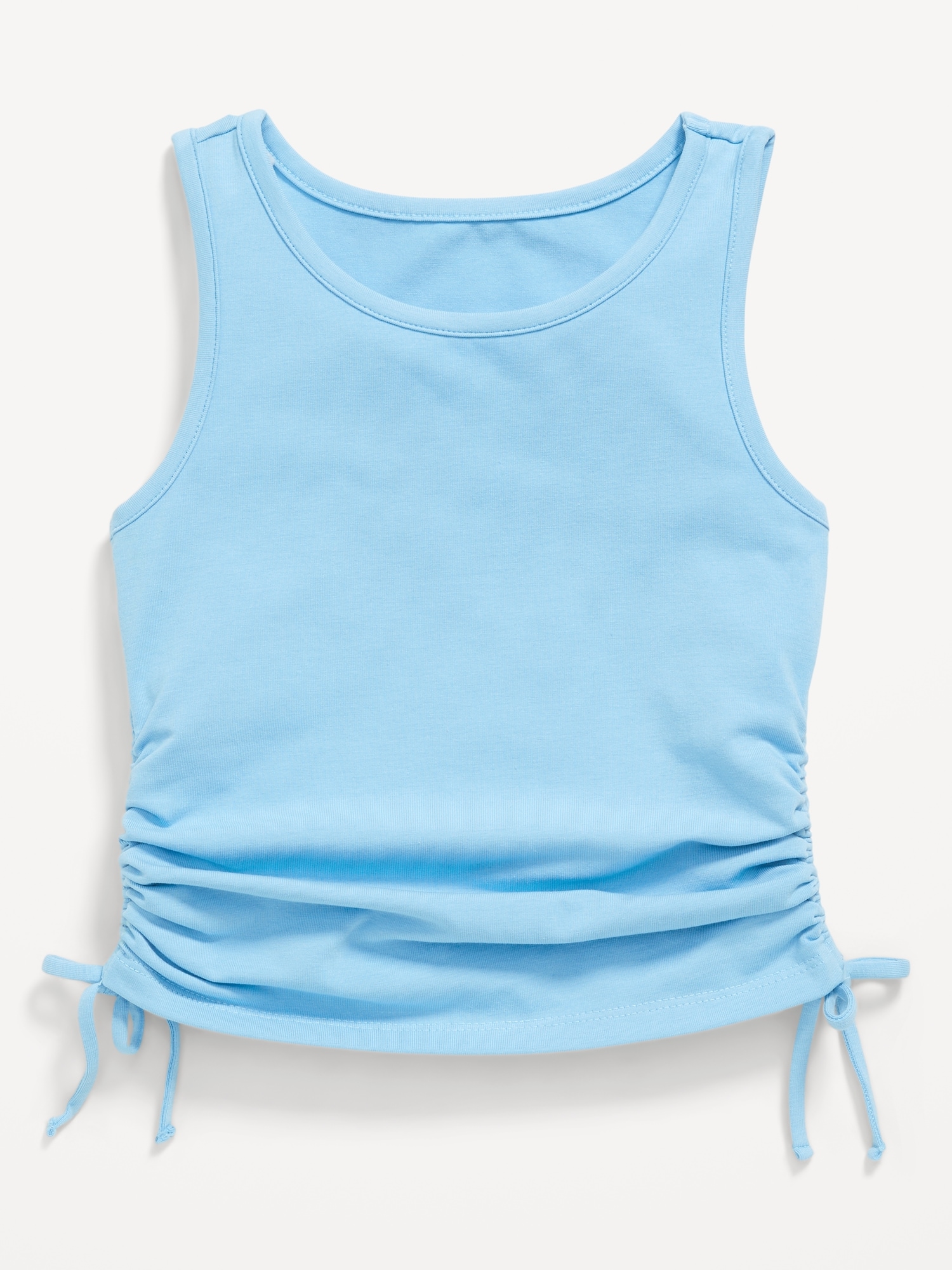 Side-Ruched Tank Top for Girls: scoop neckline, sleeveless, ruching at sides, decorative ties at each side, #766963