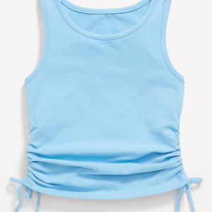 Side-Ruched Tank Top for Girls: scoop neckline, sleeveless, ruching at sides, decorative ties at each side, #766963