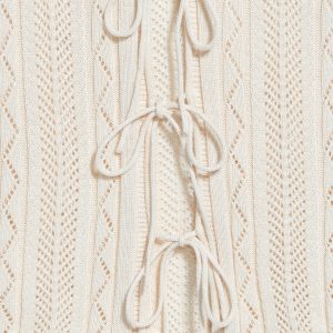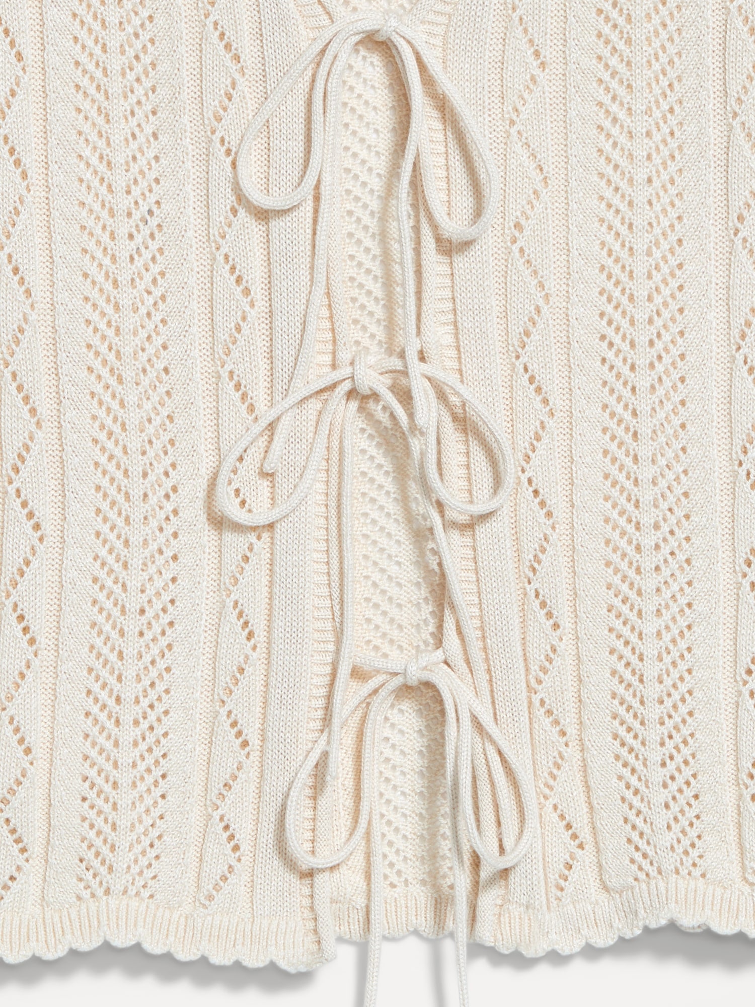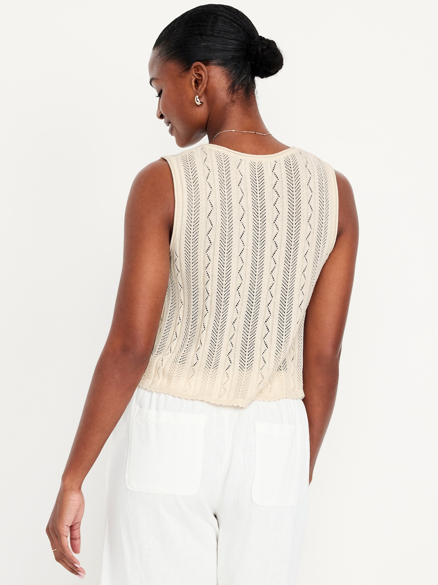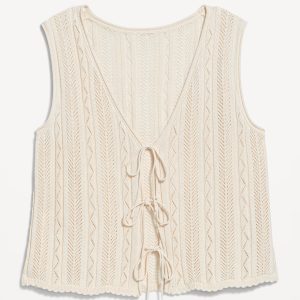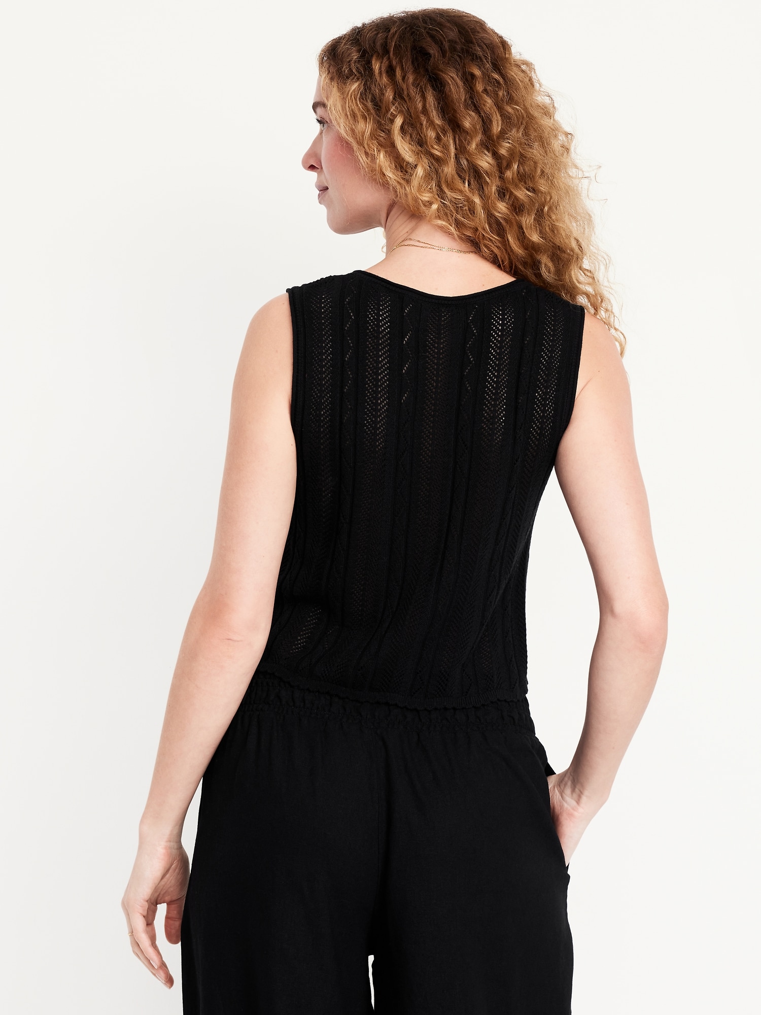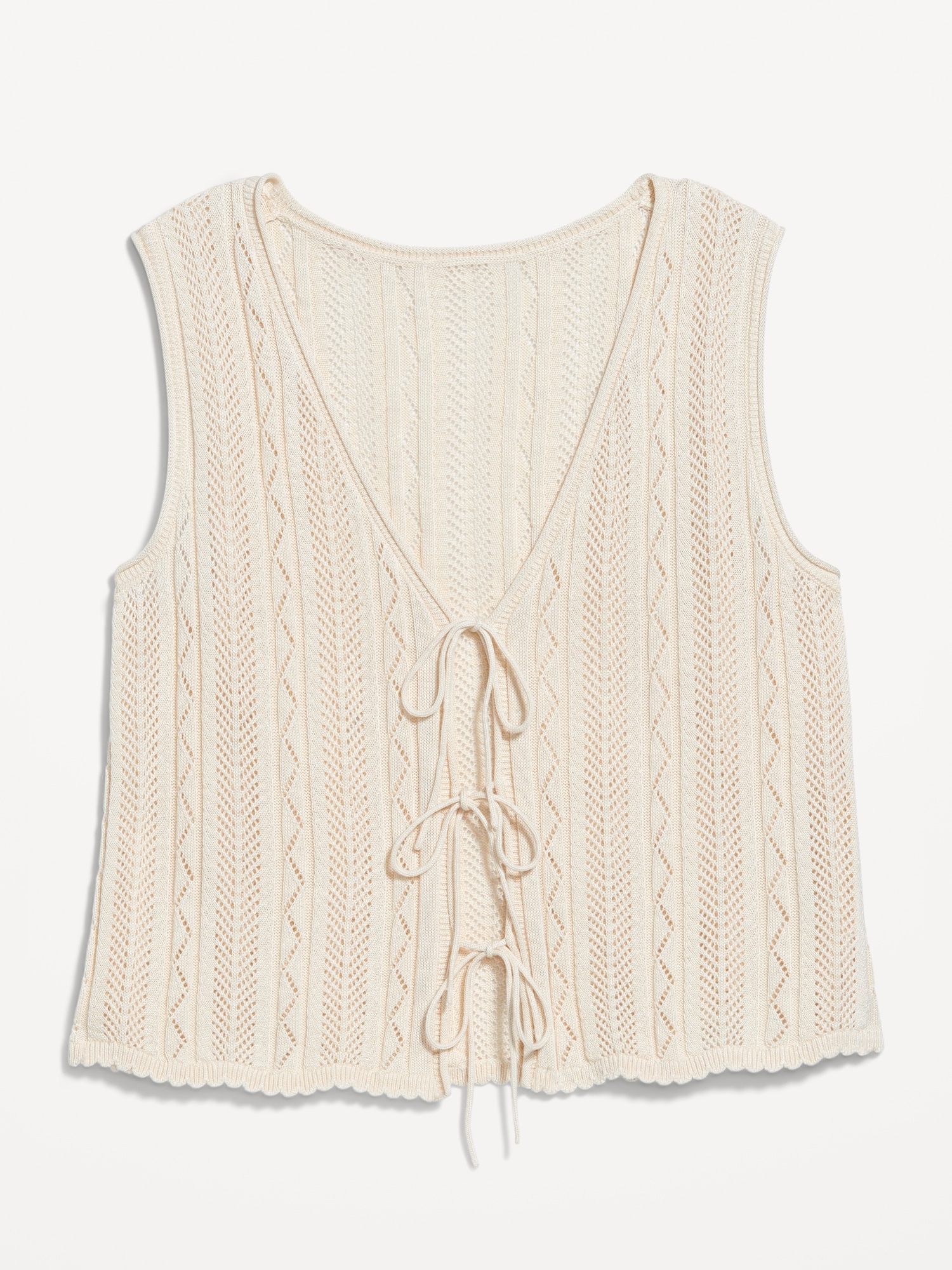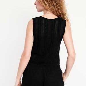 Sleeveless Crochet Tie-Front Top: deep v-neck, wide straps, tie-front detail, #761570