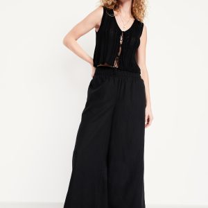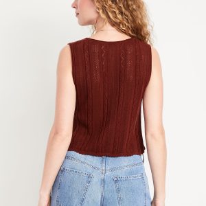 Sleeveless Crochet Tie-Front Top: deep v-neck, wide straps, tie-front detail, #761570