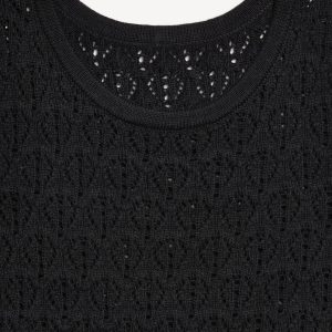 Sleeveless Crochet Tunic Sweater: high neck, scallop hem, pair back to our matching crochet pants, #761504