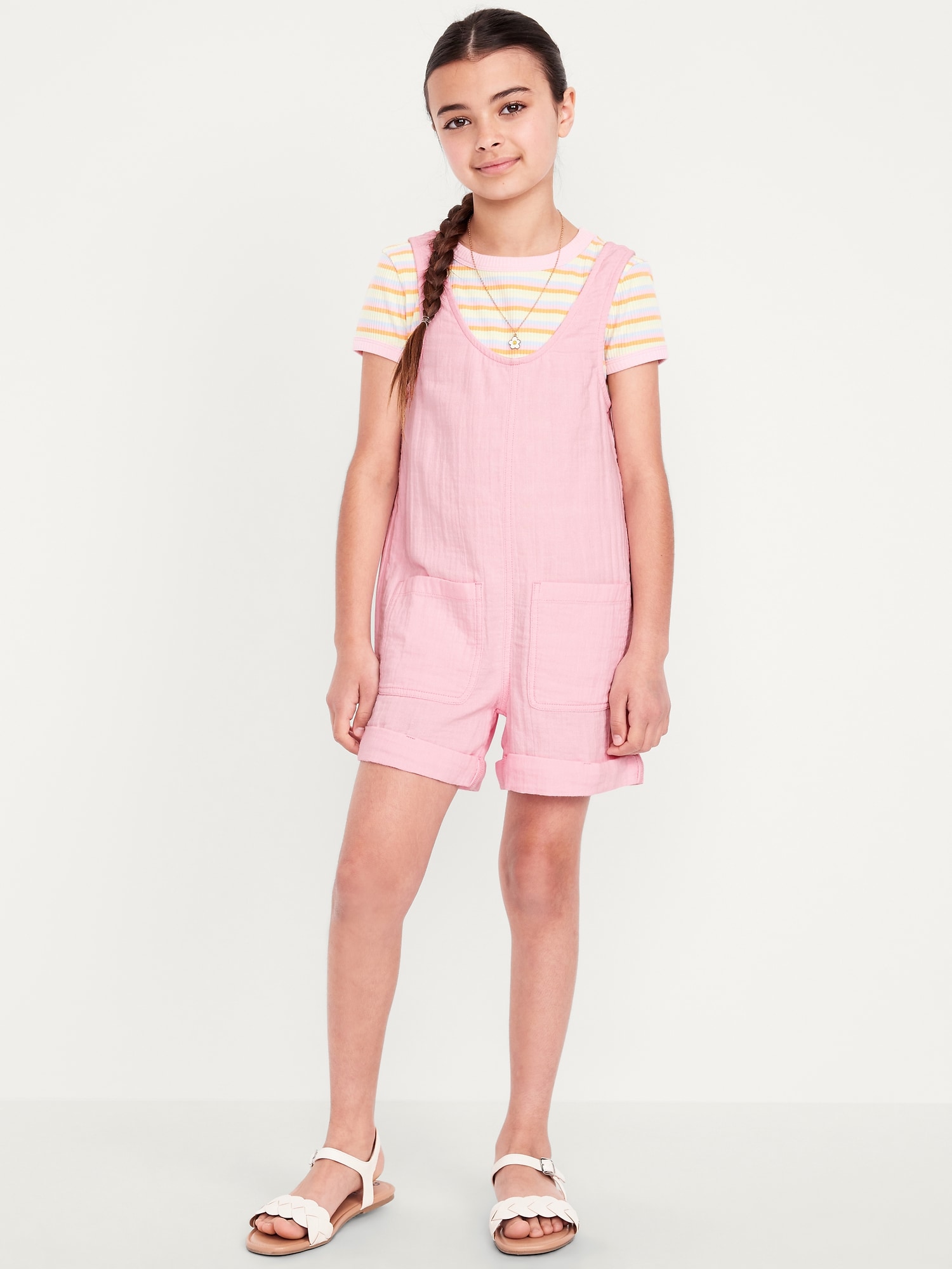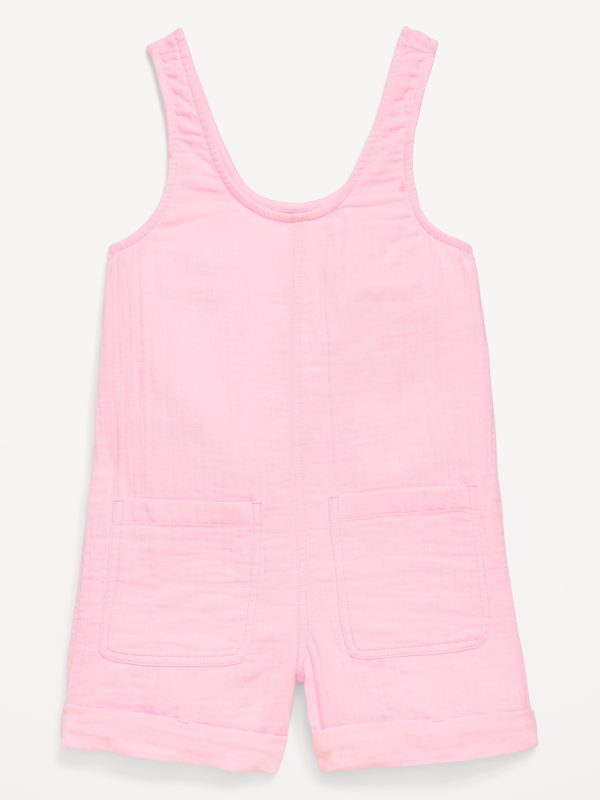 Sleeveless Double-Weave Pocket Romper for Girls
