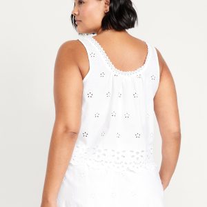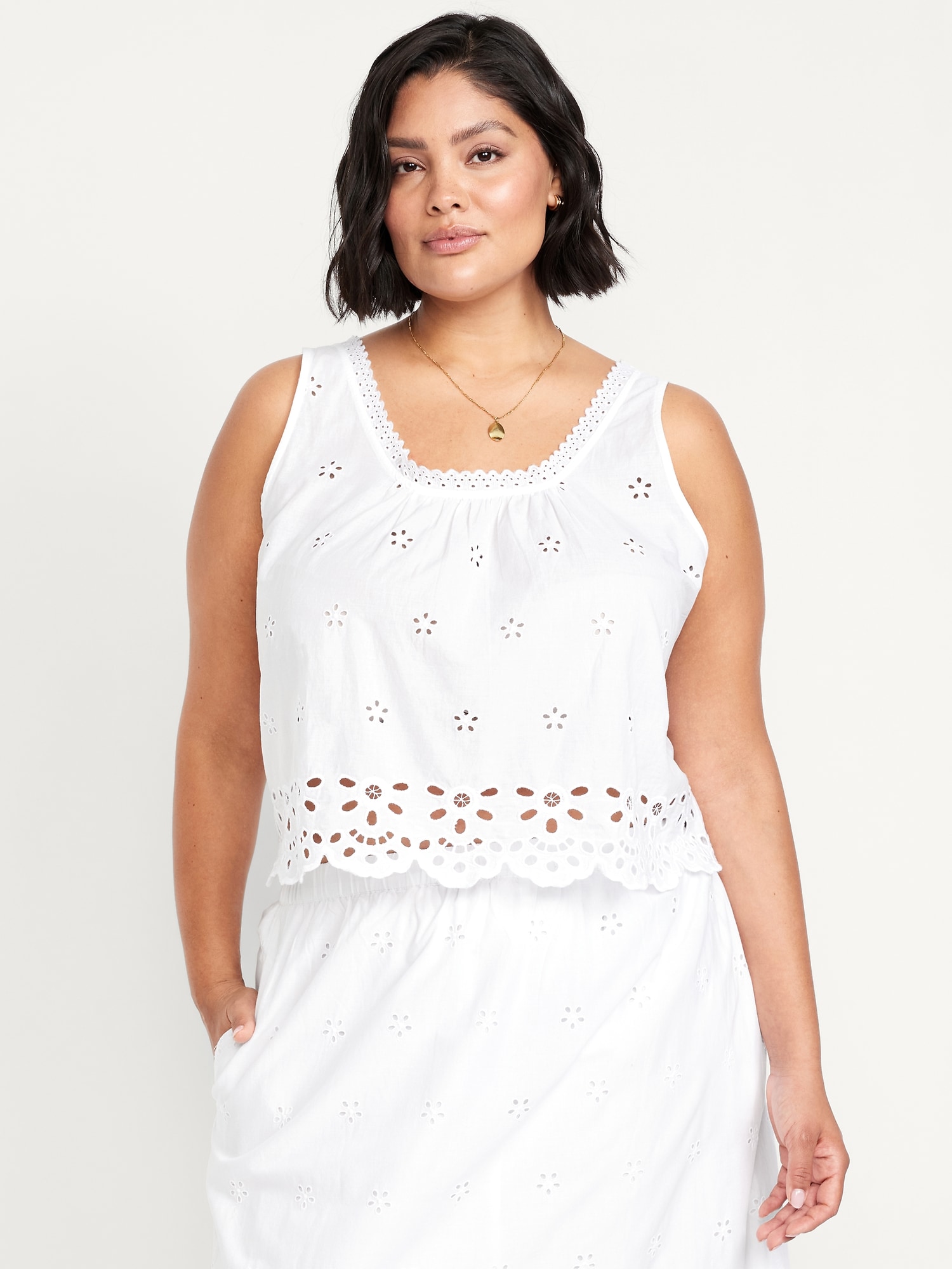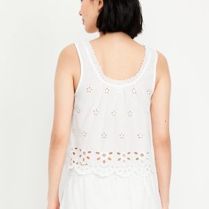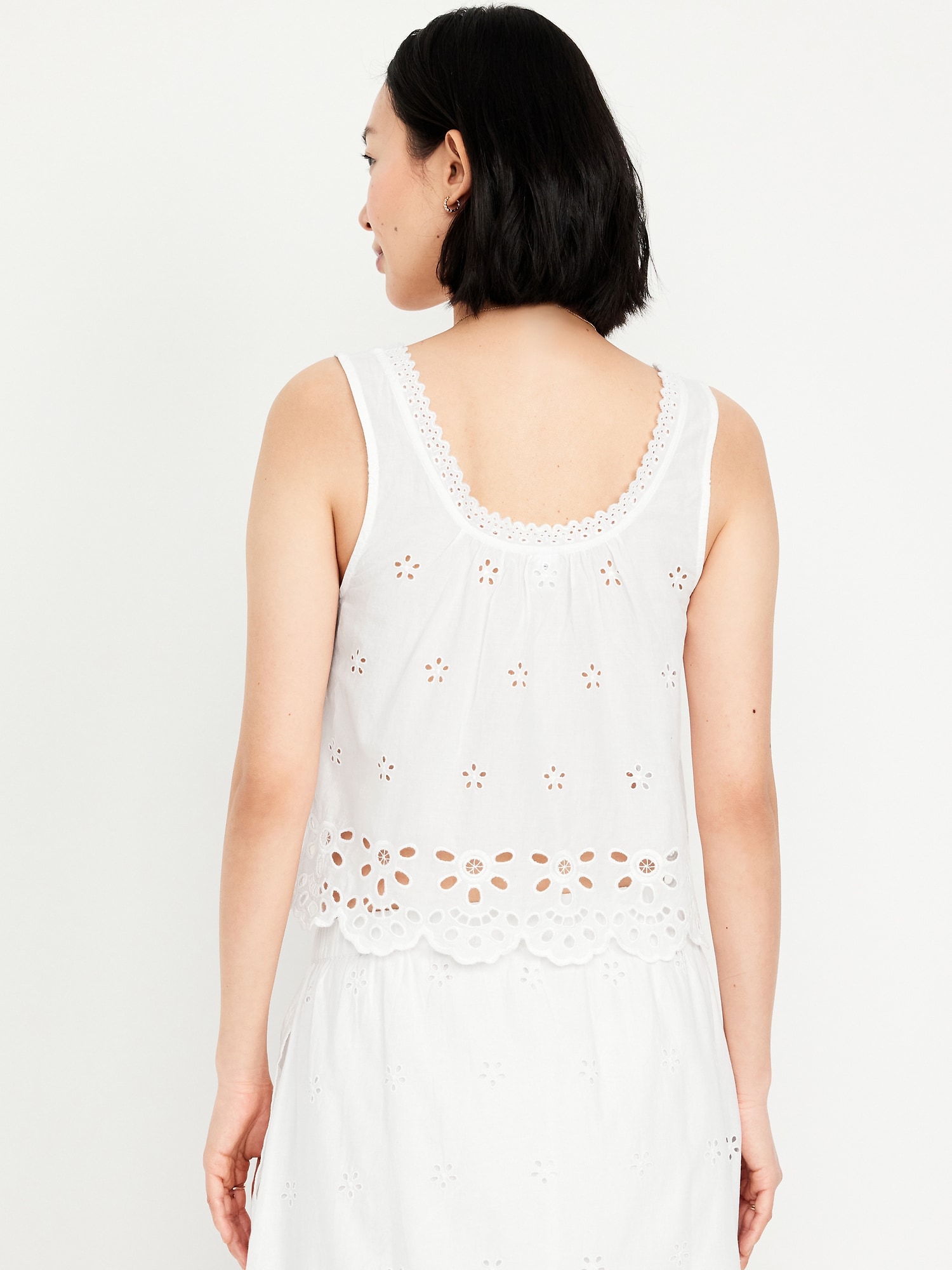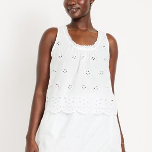 Sleeveless Eyelet Top: lace-trim scoop neck, eyelet detail, scallop hem, #704096