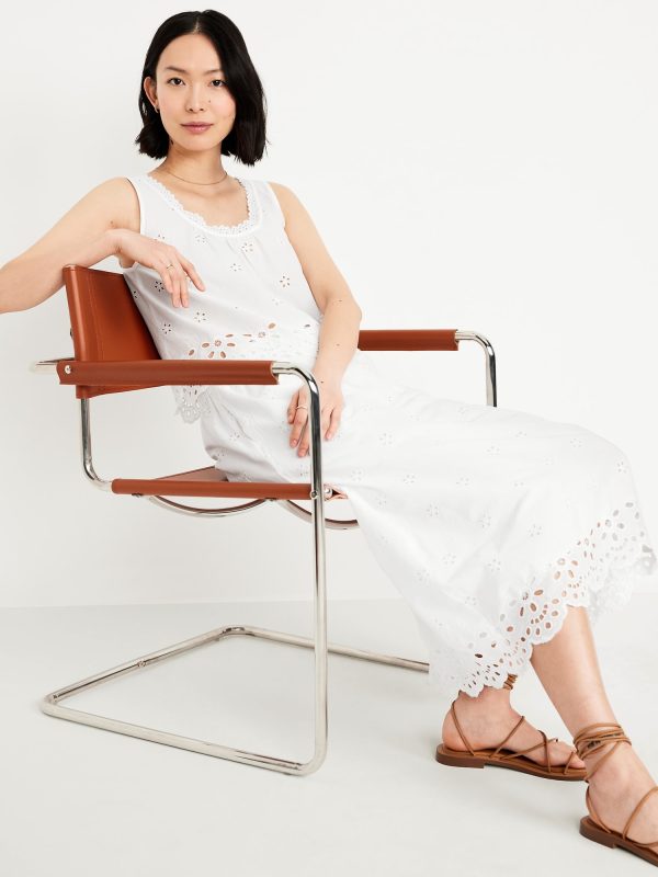 Sleeveless Eyelet Top: lace-trim scoop neck, eyelet detail, scallop hem, #704096