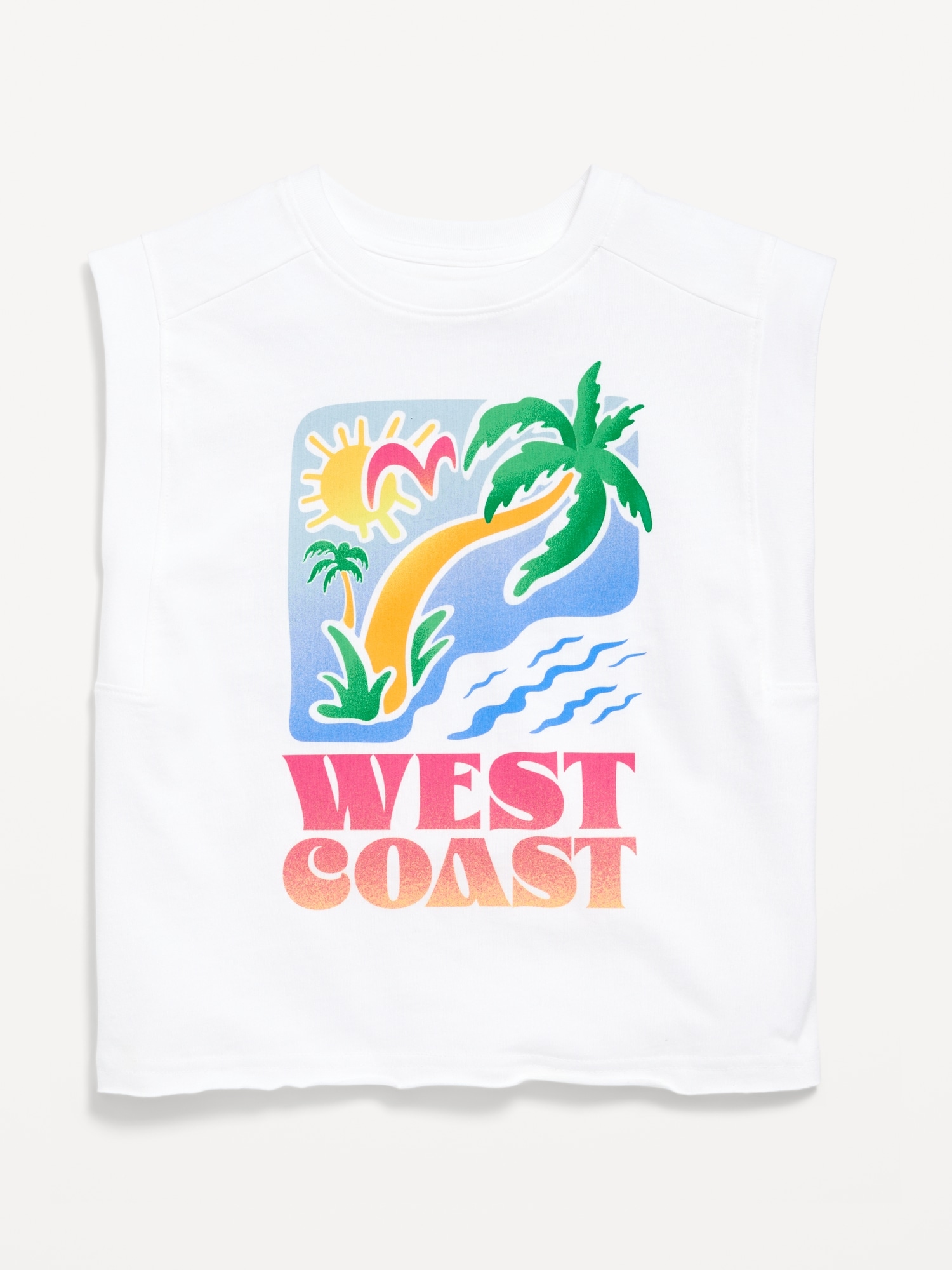 Sleeveless Muscle Graphic T-Shirt for Girls: high crew neck, sleeveless, graphic at front, #763753