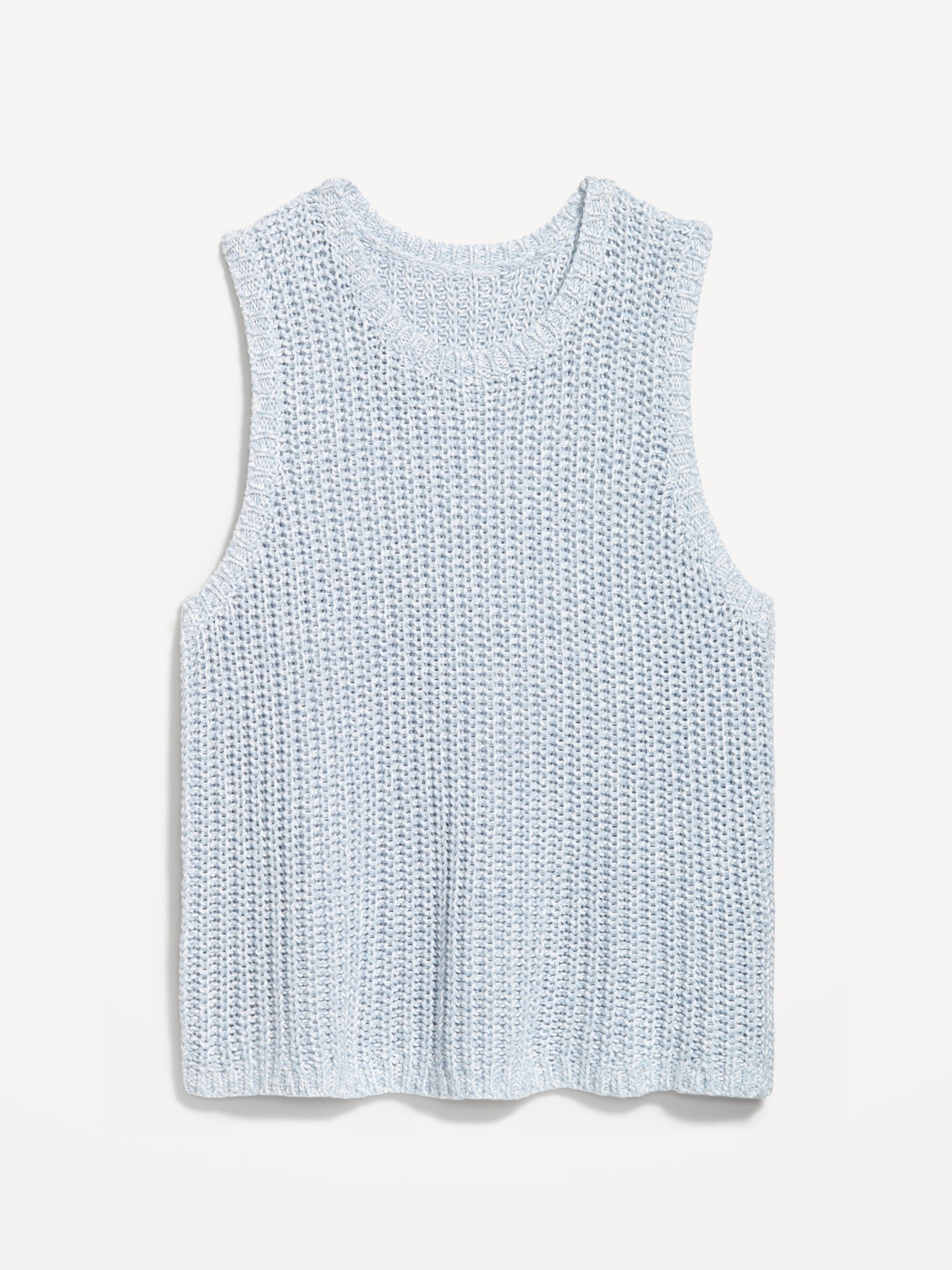 Sleeveless Open-Stitch Sweater: crew neck, sleeveless, pullover style, #664151