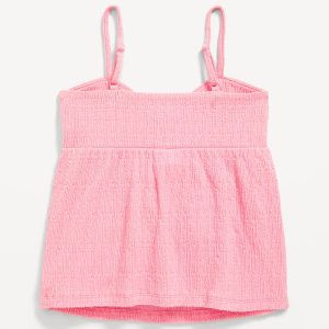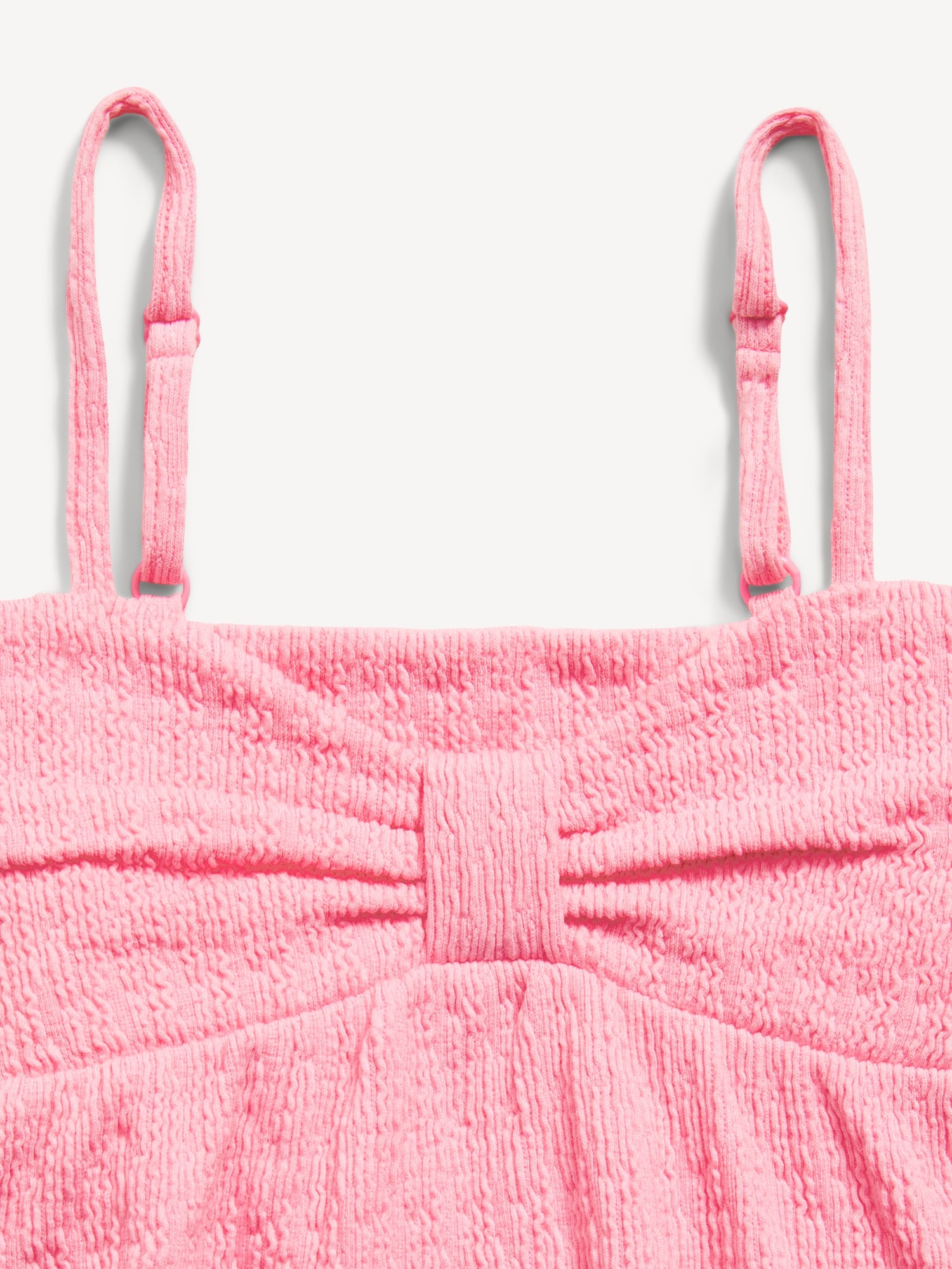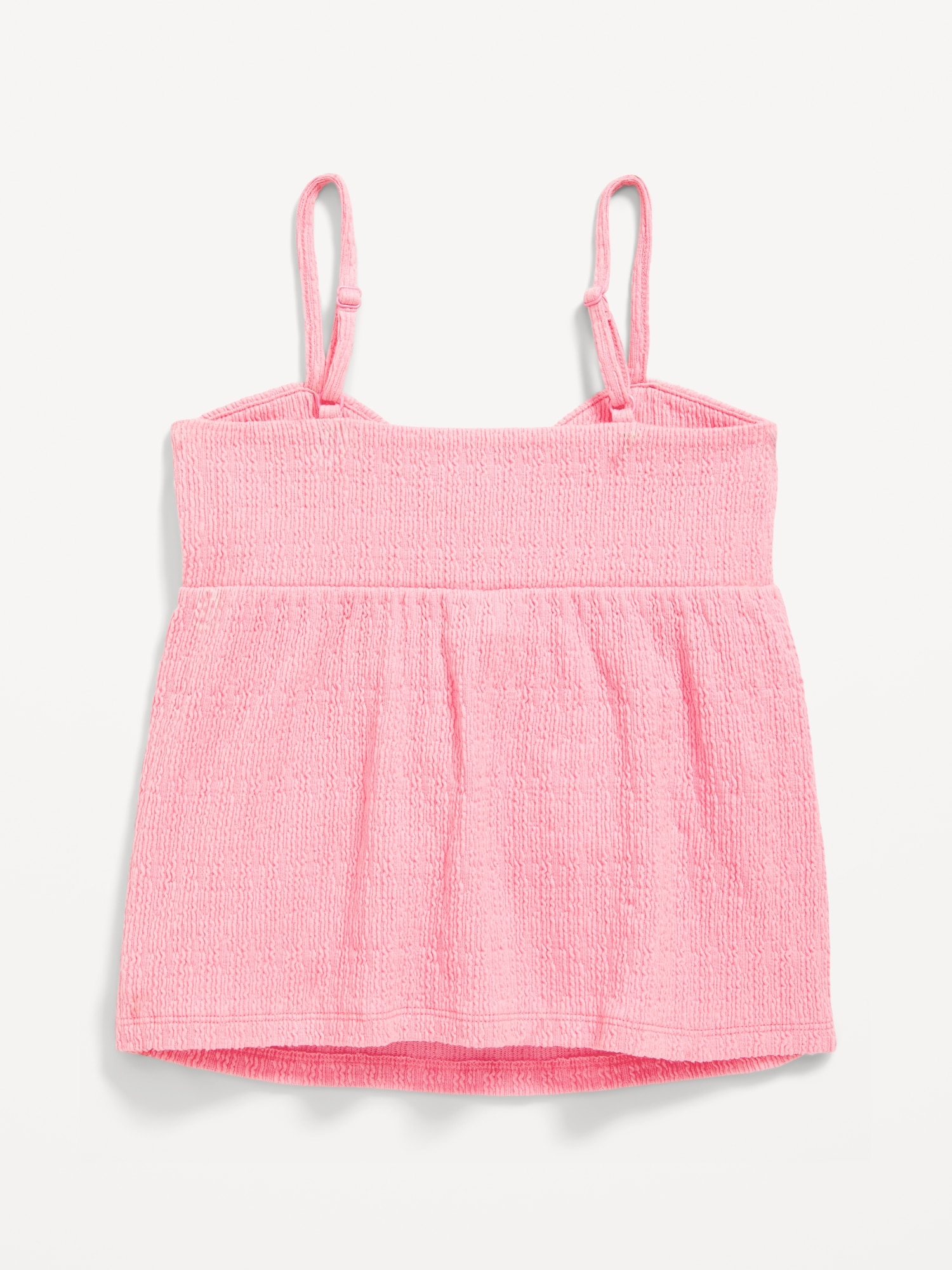 Sleeveless Pucker Tank Top for Girls: adjustable straps, knotted-bow accent at front, peplum hem, #766952