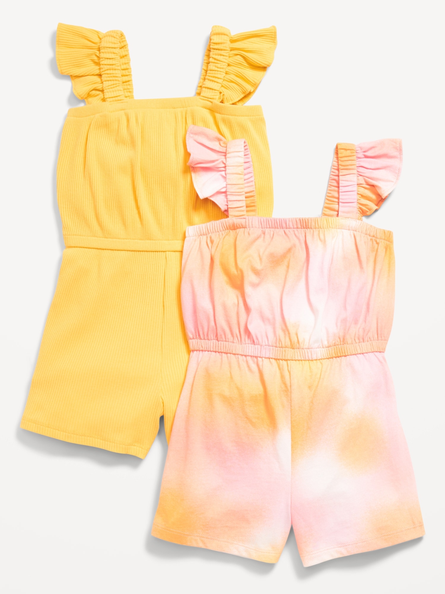 Sleeveless Ruffle-Trim One-Piece Romper 2-Pack for Toddler Girls