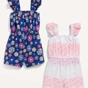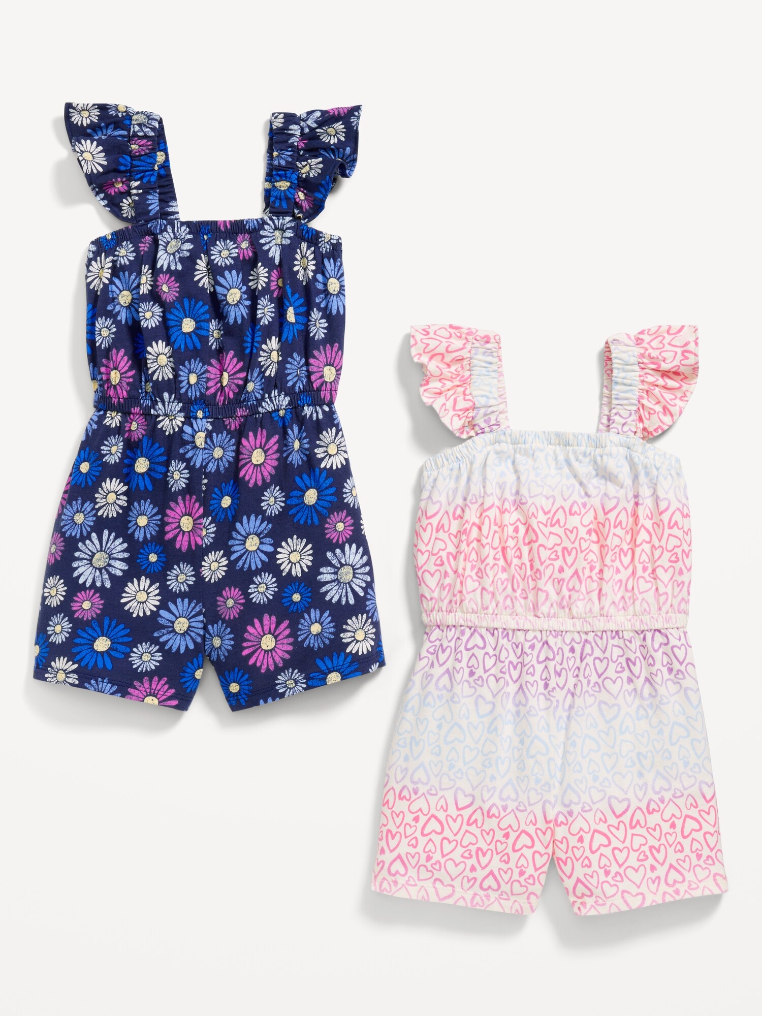 Sleeveless Ruffle-Trim One-Piece Romper 2-Pack for Toddler Girls
