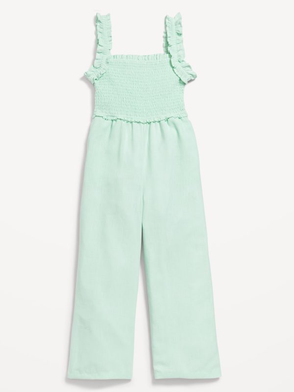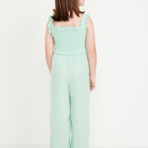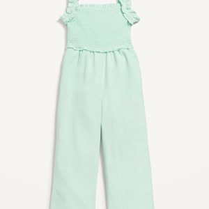 Sleeveless Smocked Ruffle-Trim Jumpsuit for Girls