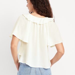 Sleeveless Textured-Dobby Top: wide straps, notched tie-front accent, crochet-lace trim, shirred detail, #764188