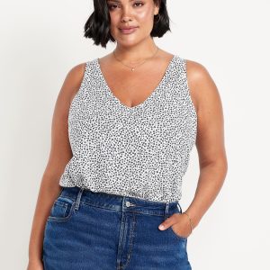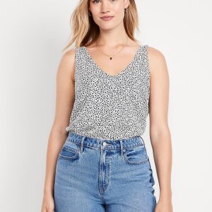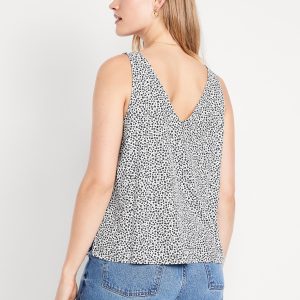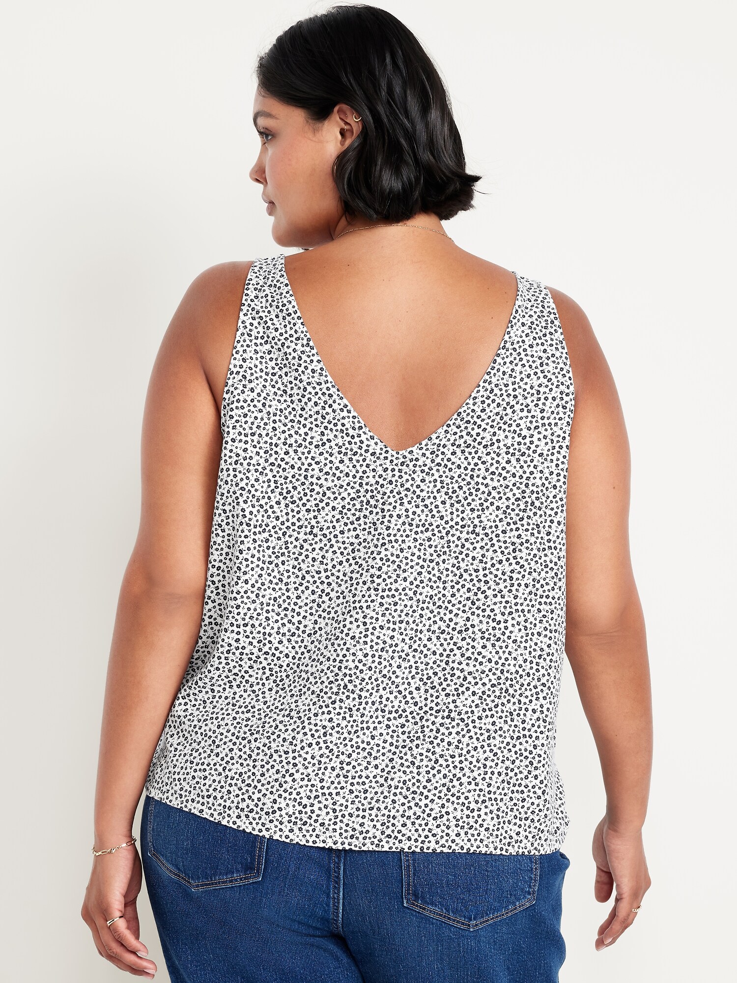 Sleeveless V-Neck Crepe Top: v-neck and v-back, wide straps, #805743