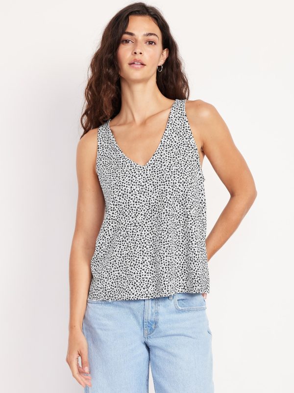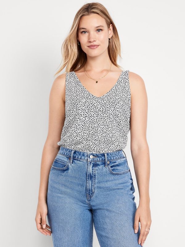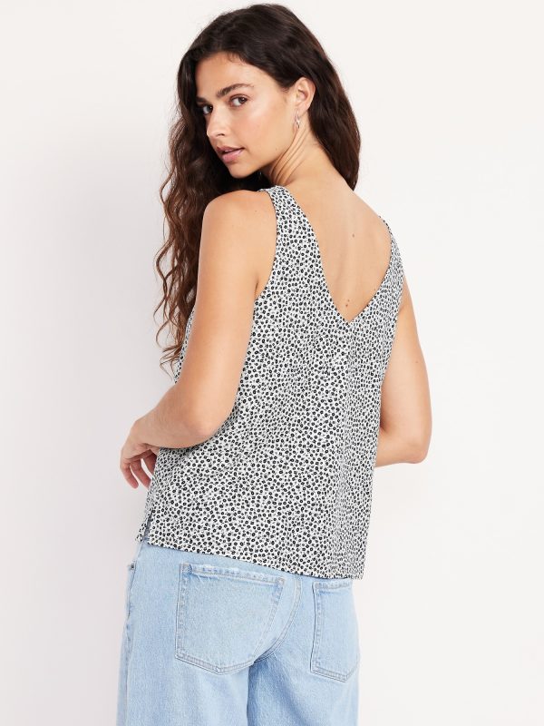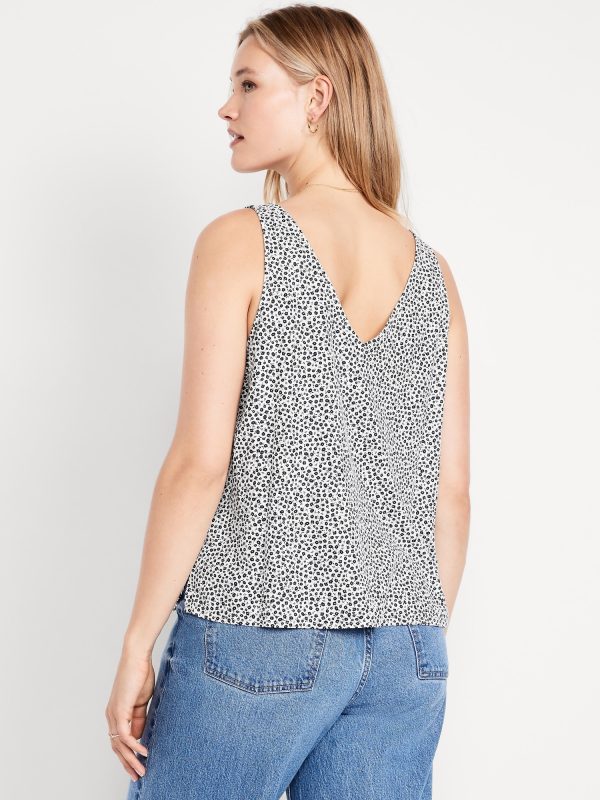 Sleeveless V-Neck Crepe Top: v-neck and v-back, wide straps, #805743