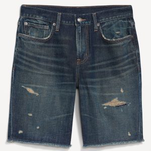 Slim Built-In Flex Jean Raw-Edge Shorts — 9.5-inch inseam