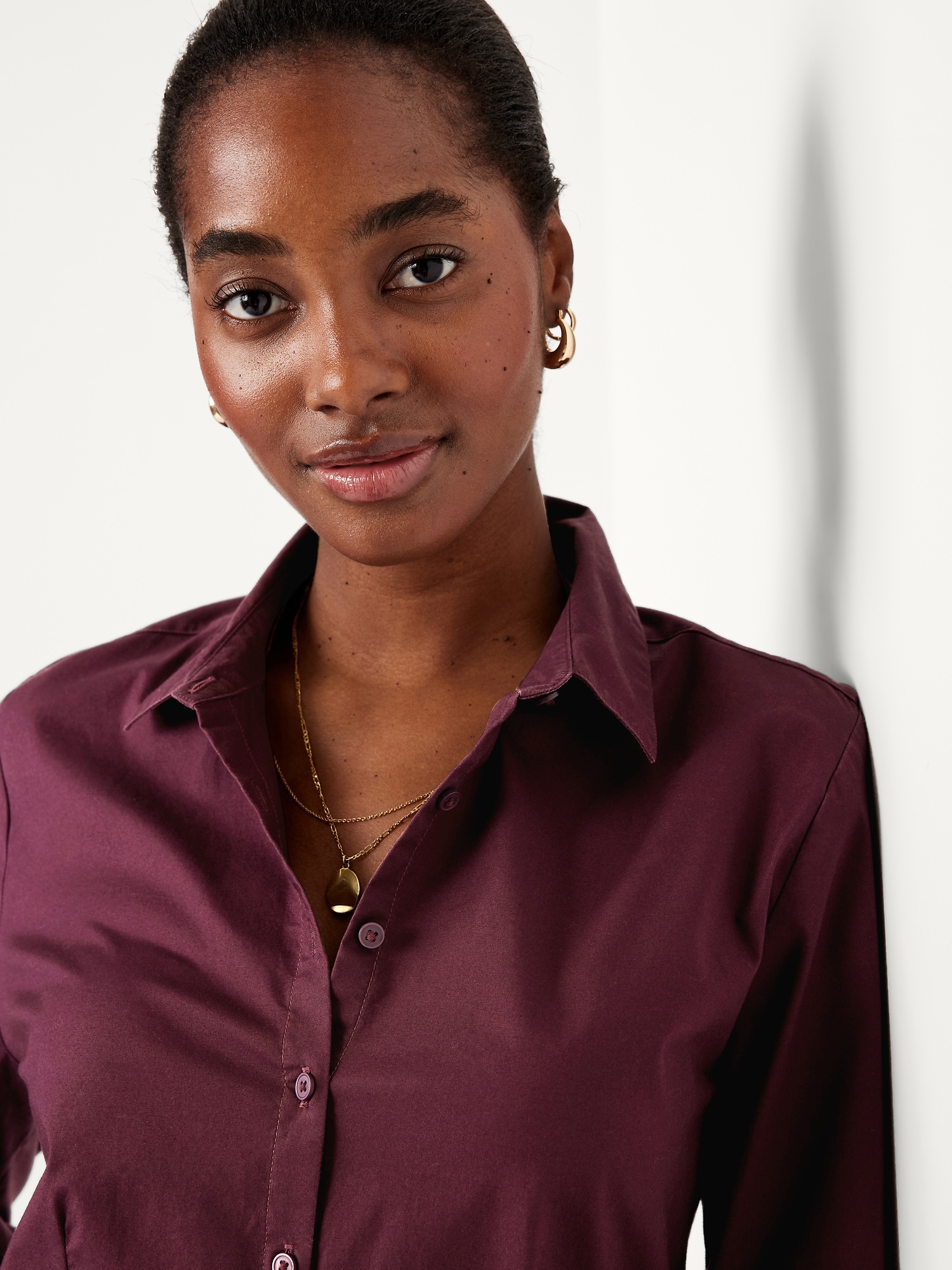 Slim Button-Down Shirt: spread collar, long sleeves, buttoned cuffs, button front, striped print, curved hem, #545902