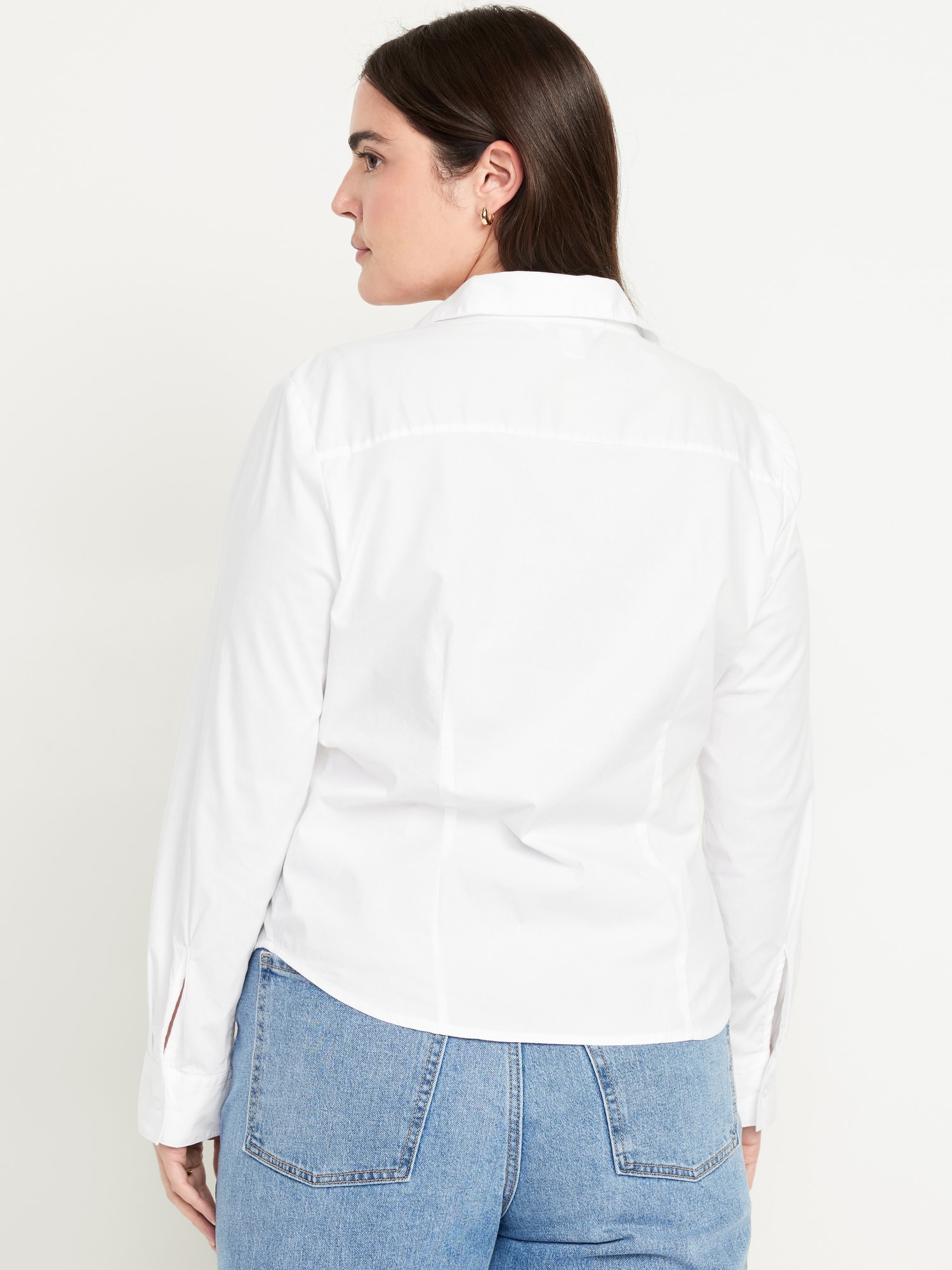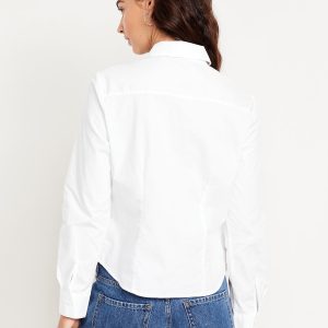 Slim Button-Down Shirt: spread collar, long sleeves, buttoned cuffs, button front, striped print, curved hem, #545902