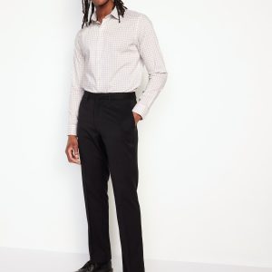 Slim Fit Pro Signature Performance Dress Shirt: 2″ pointed collar, built-in collar stays, long sleeves, buttoned cuffs, full-button front, breathable, quick drying, go-dry wicks moisture, #418101