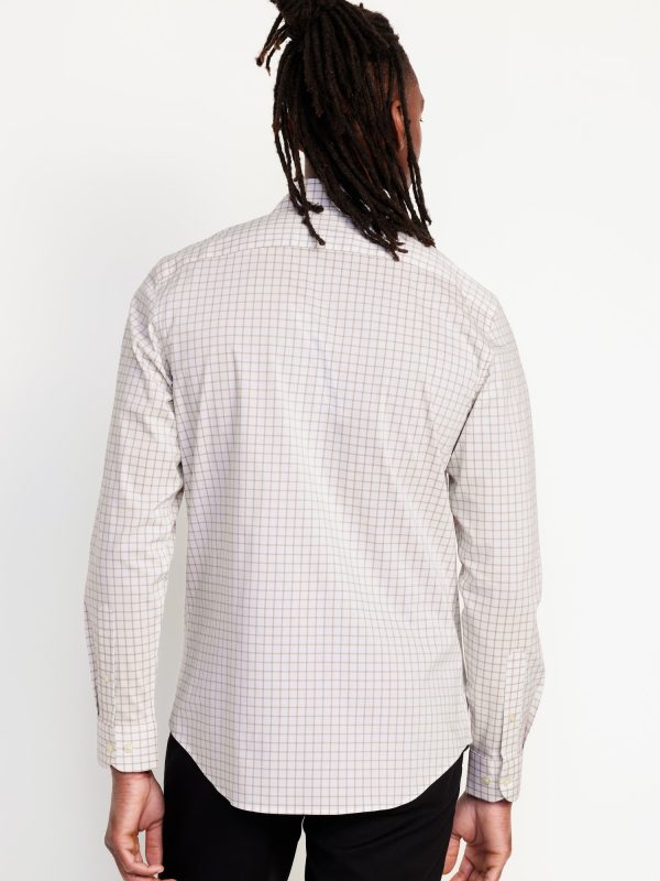 Slim Fit Pro Signature Performance Dress Shirt: 2″ pointed collar, built-in collar stays, long sleeves, buttoned cuffs, full-button front, breathable, quick drying, go-dry wicks moisture, #418101