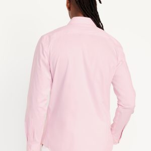 Slim Fit Pro Signature Performance Dress Shirt: 2″ pointed collar, built-in collar stays, long sleeves, buttoned cuffs, full-button front, breathable, quick drying, go-dry wicks moisture, #418101