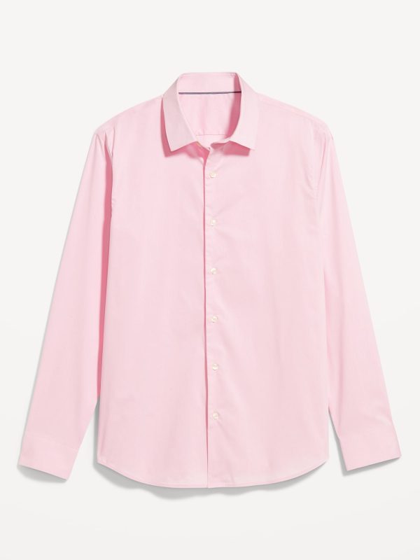 Slim Fit Pro Signature Performance Dress Shirt: 2″ pointed collar, built-in collar stays, long sleeves, buttoned cuffs, full-button front, breathable, quick drying, go-dry wicks moisture, #418101