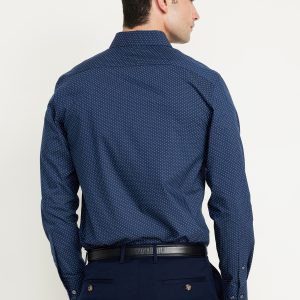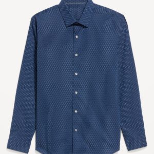 Slim Fit Pro Signature Performance Dress Shirt: 2″ pointed collar, built-in collar stays, long sleeves, buttoned cuffs, full-button front, breathable, quick drying, go-dry wicks moisture, #418101