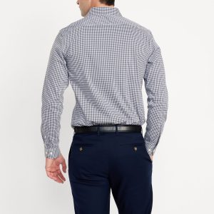 Slim Fit Pro Signature Performance Dress Shirt: 2″ pointed collar, built-in collar stays, long sleeves, buttoned cuffs, full-button front, breathable, quick drying, go-dry wicks moisture, #418101