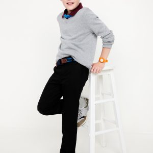 Slim School Uniform Chino Pants for Boys: Uniform Guarantee: Uniforms may be returned for a full refund with the original receipt for 365 days from the date of purchase.interior adjustable waistband, hook-and-bar closure in sizes 5-8, regular button keyhole closure in sizes 10-20, zip fly, diagonal on-seam pockets at front, welt pocket at back, reinforced knees for added durability, #665608