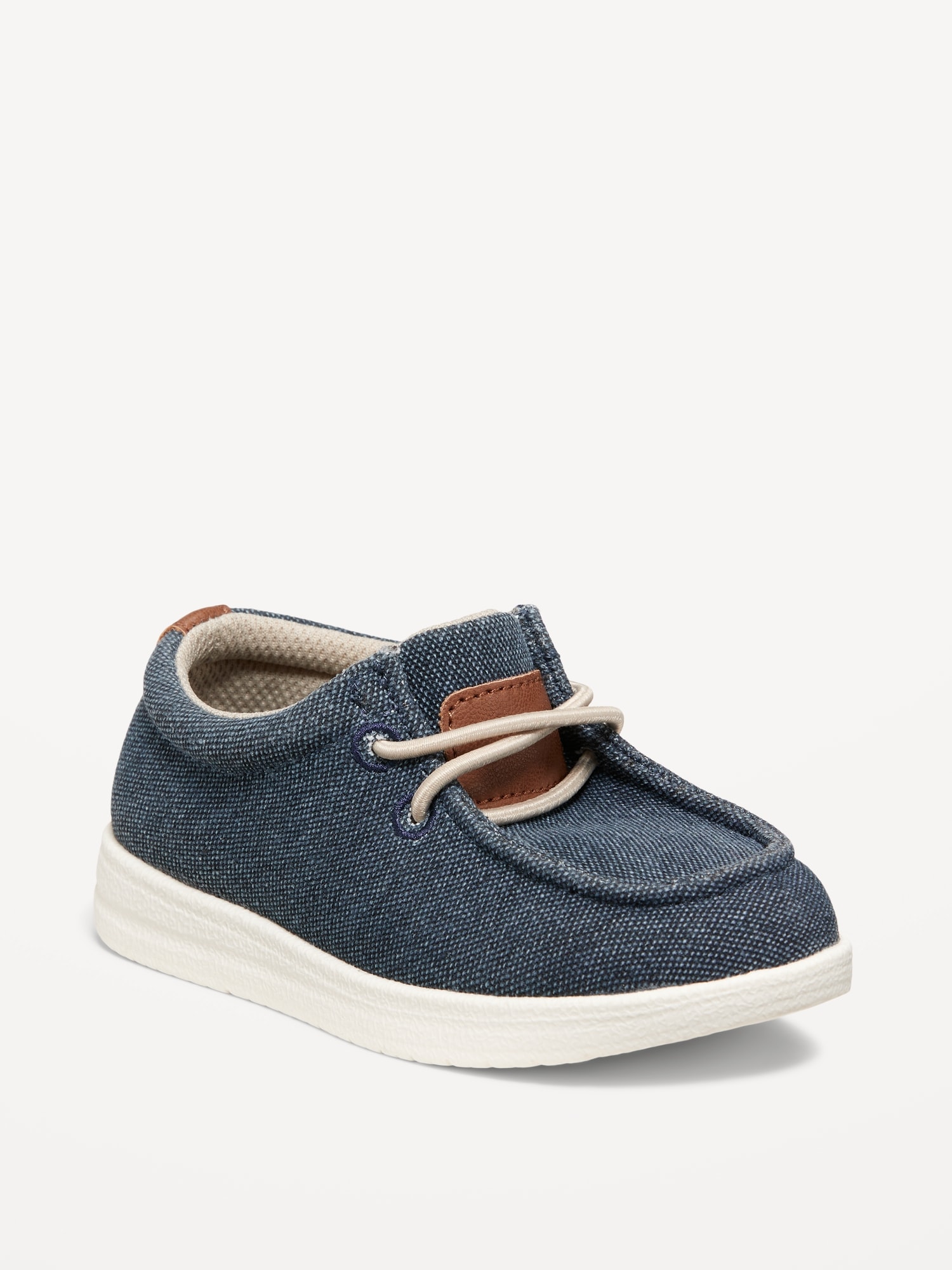 Slip-On Deck Shoes for Toddler Boys: elastic lace-up front, faux-leather piece at tongue, cushioned foot bed, textured synthetic outsole, #688929