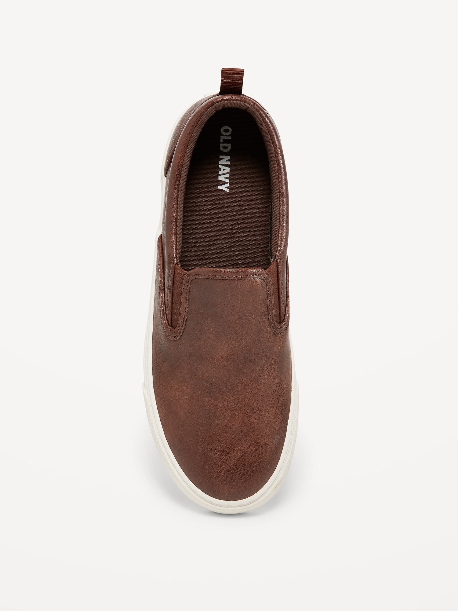 Slip-On Sneakers for Boys: webbed elastic side goring, cushioned foot bed, contrasting rubber midsole, textured outsole, pull tab at heel, #809292