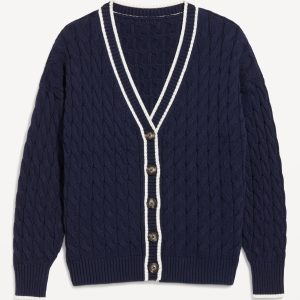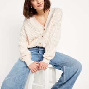 Slouchy Cable-Knit Cardigan Sweater