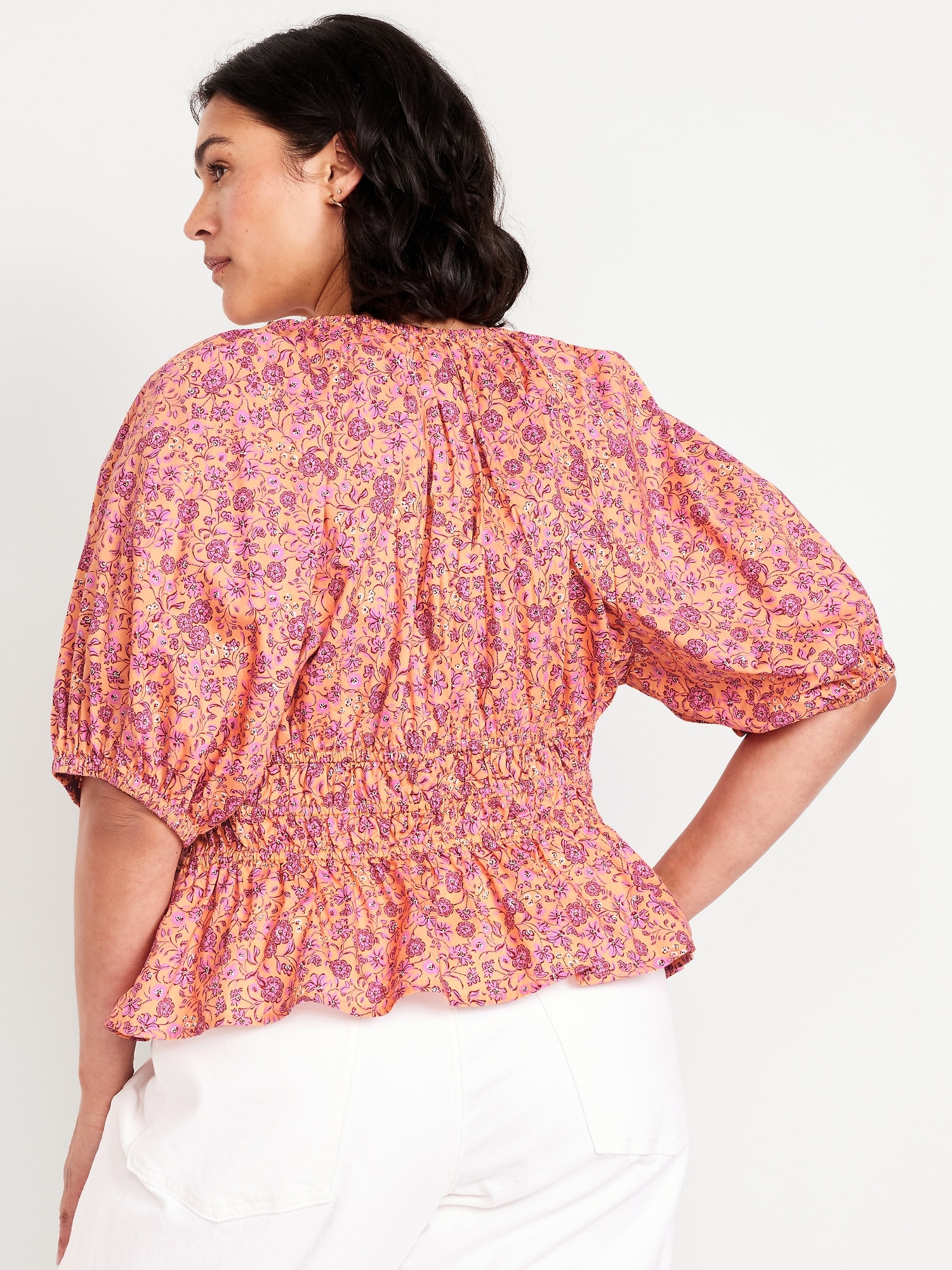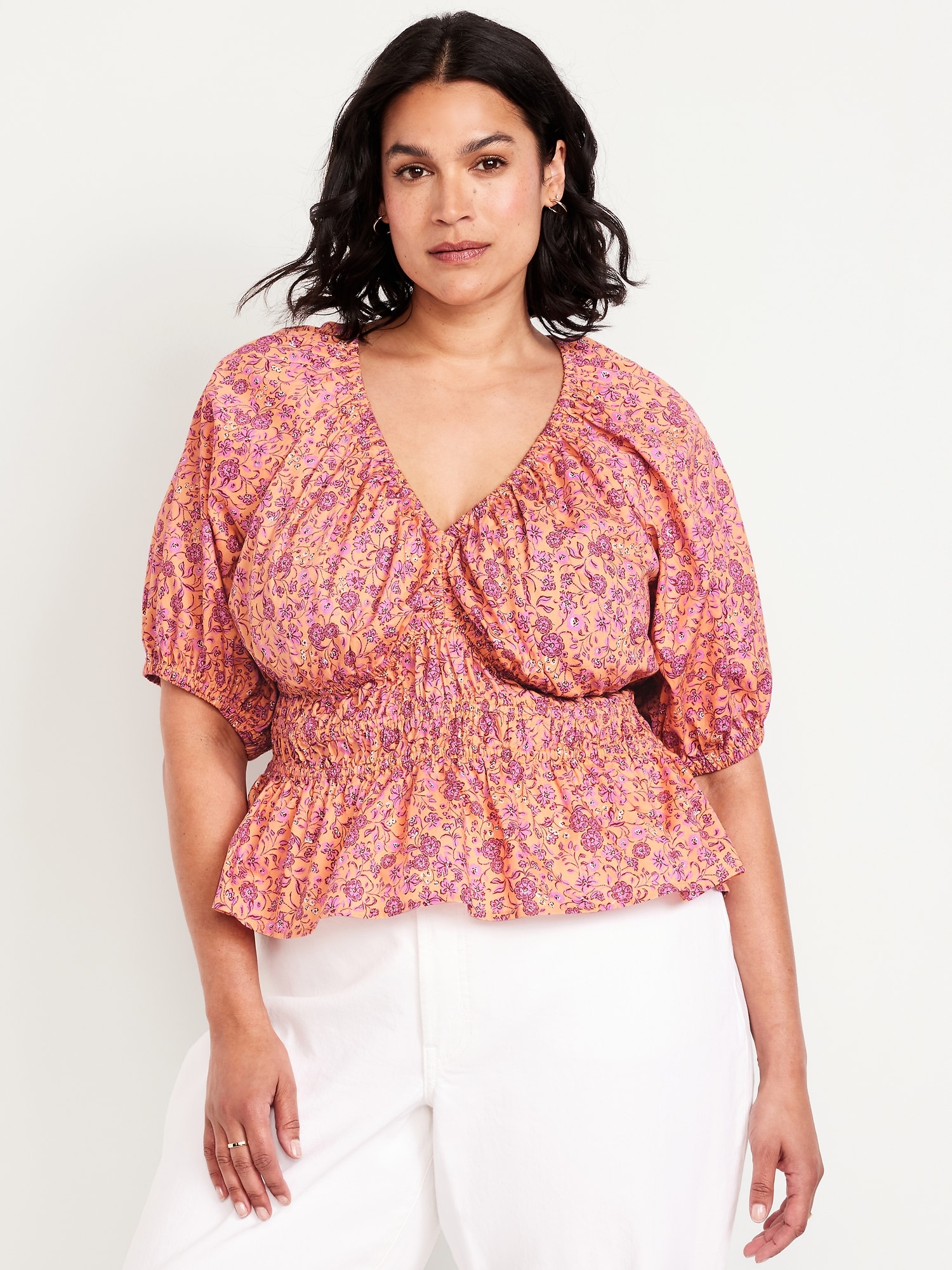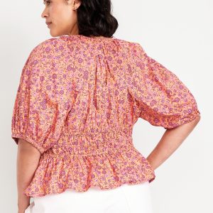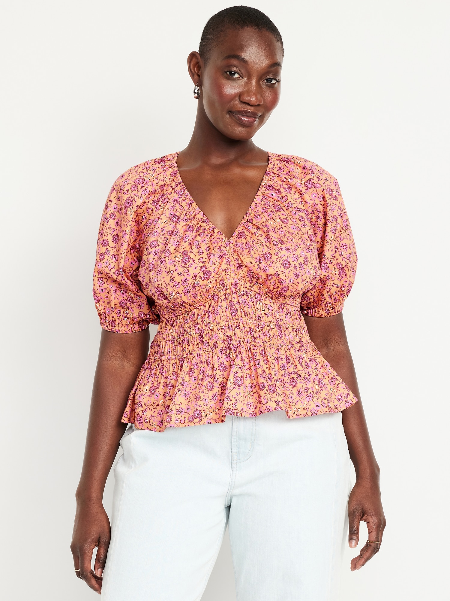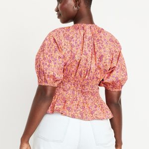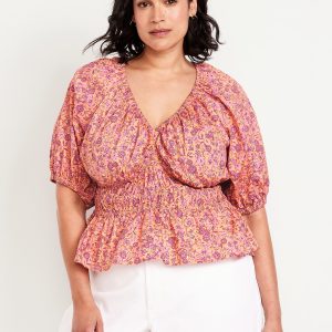 Smocked V-Neck Peplum Top