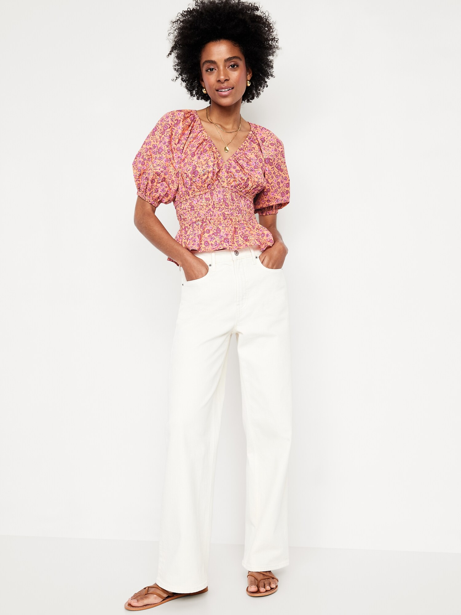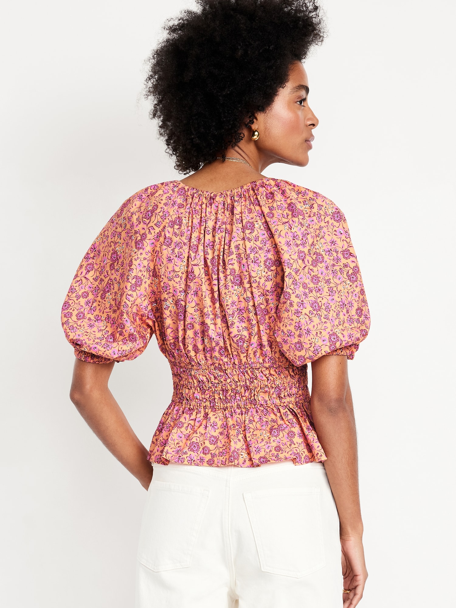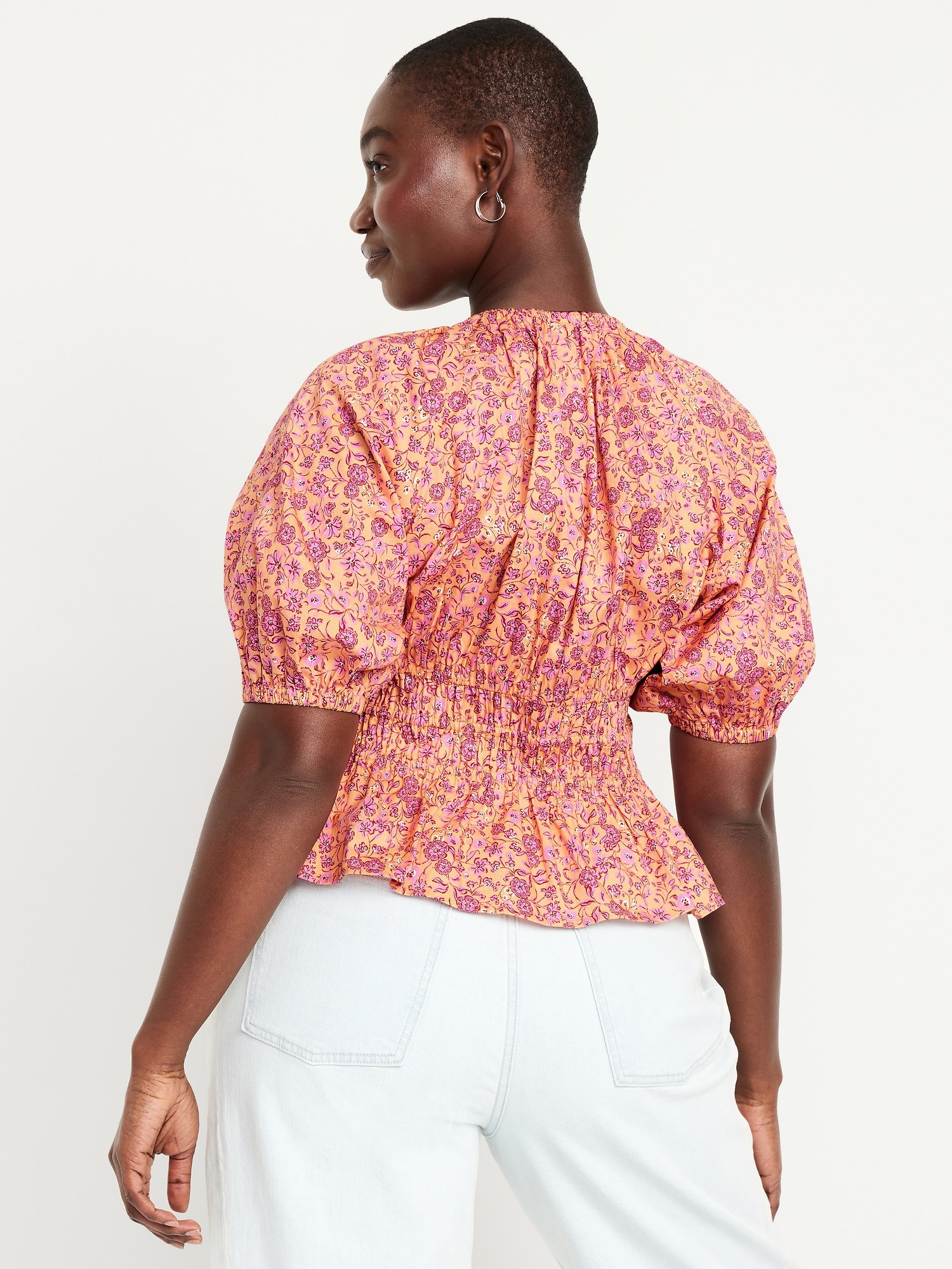 Smocked V-Neck Peplum Top