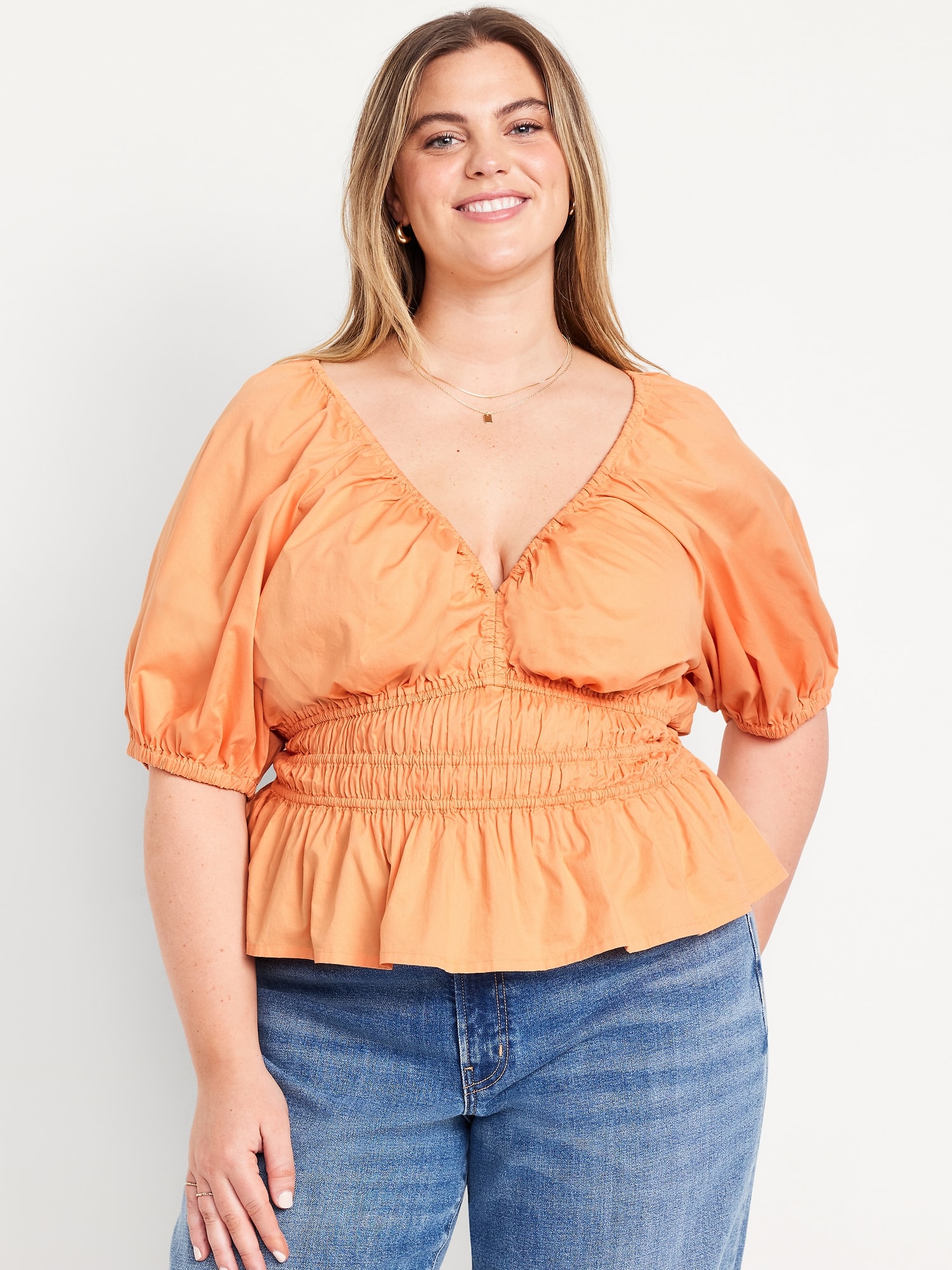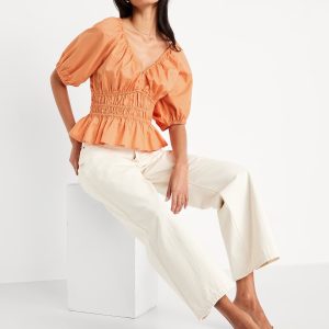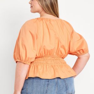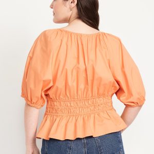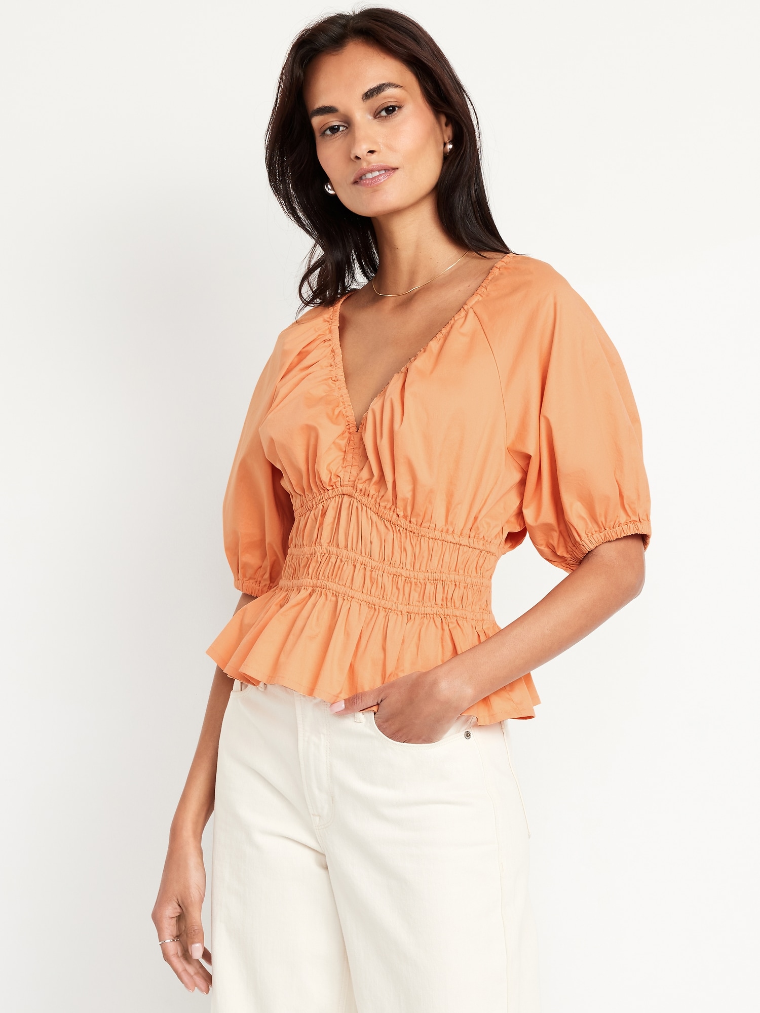 Smocked V-Neck Peplum Top
