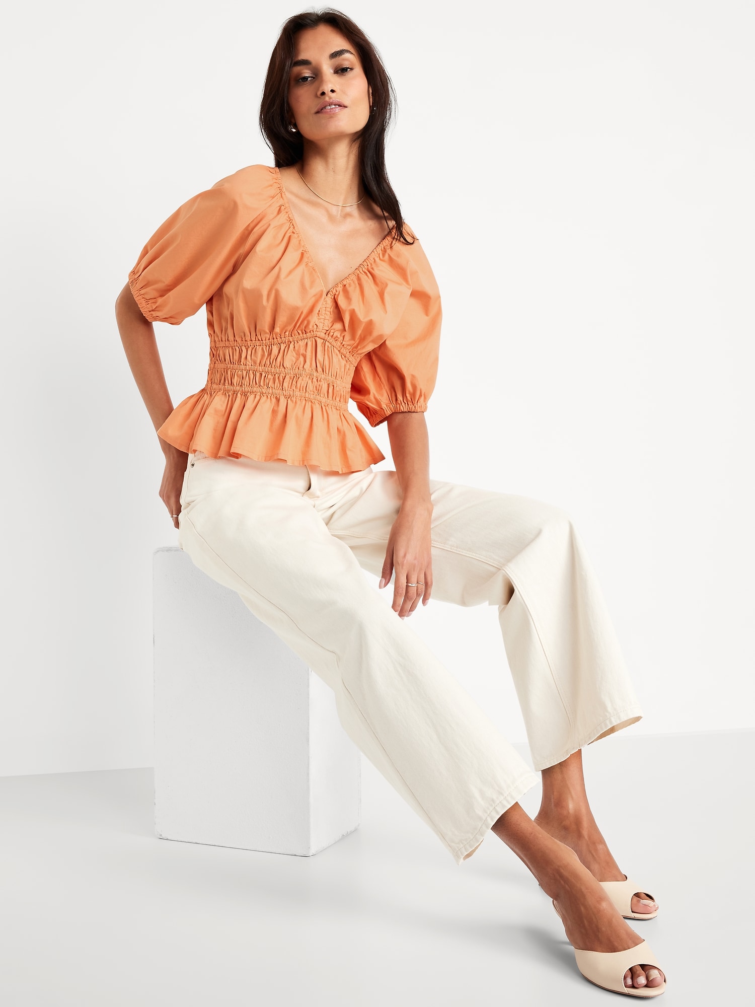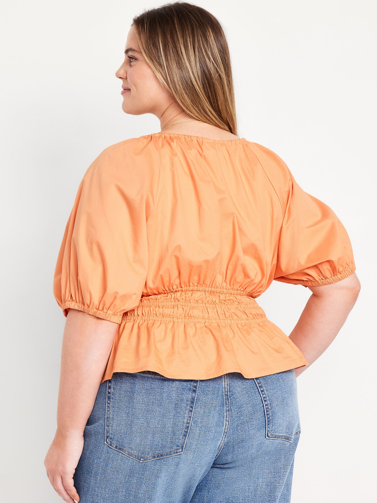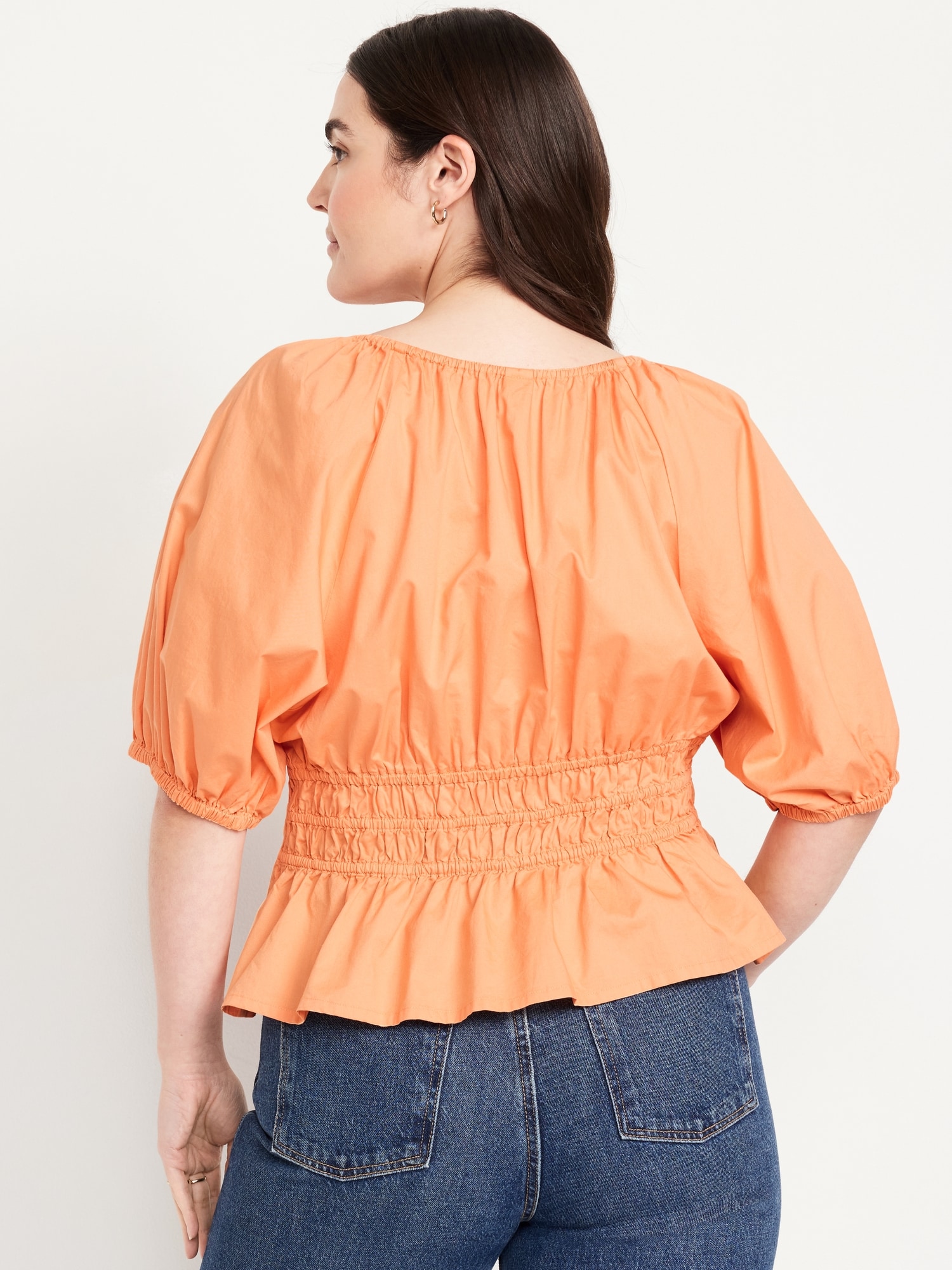 Smocked V-Neck Peplum Top