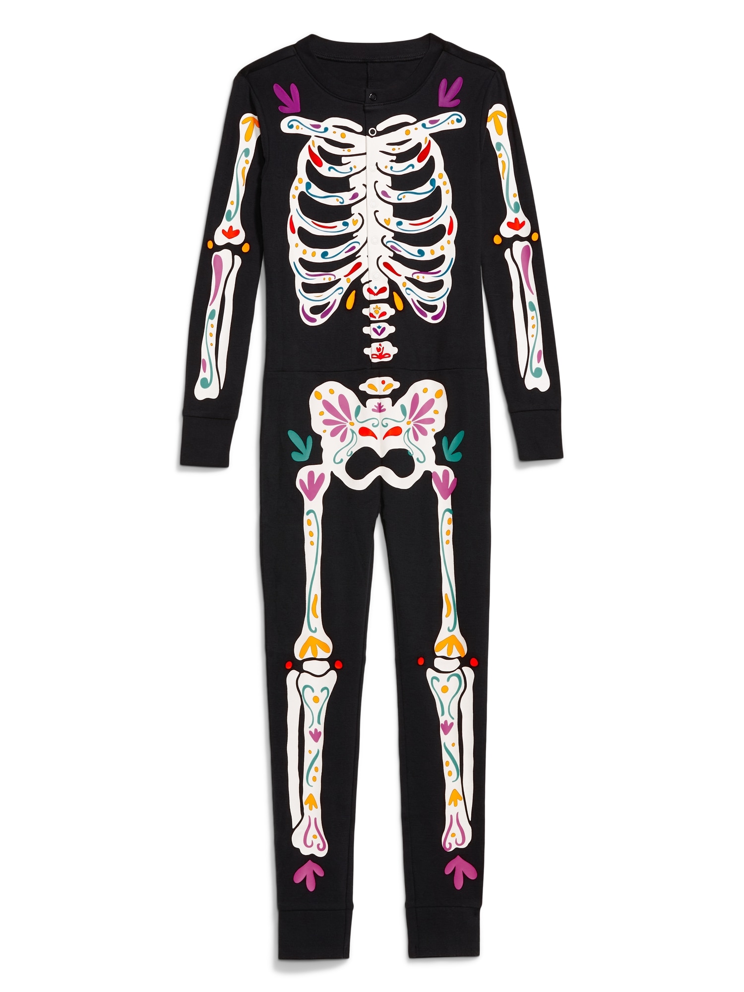 Snug-Fit Gender-Neutral One-Piece Pajama for Kids: crew neck, long sleeves, snap-button henley placket, graphic at front, #788074