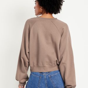 SoComfy Oversized Button-Front Sweatshirt: The perfect-weight, never-taking-this-off fleece.button-front crew neck, long blouson sleeves, rib-knit trim, pullover style, #764233