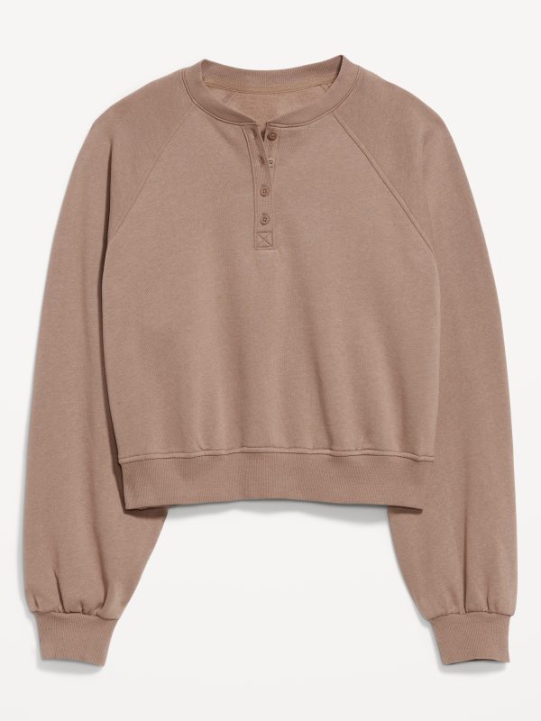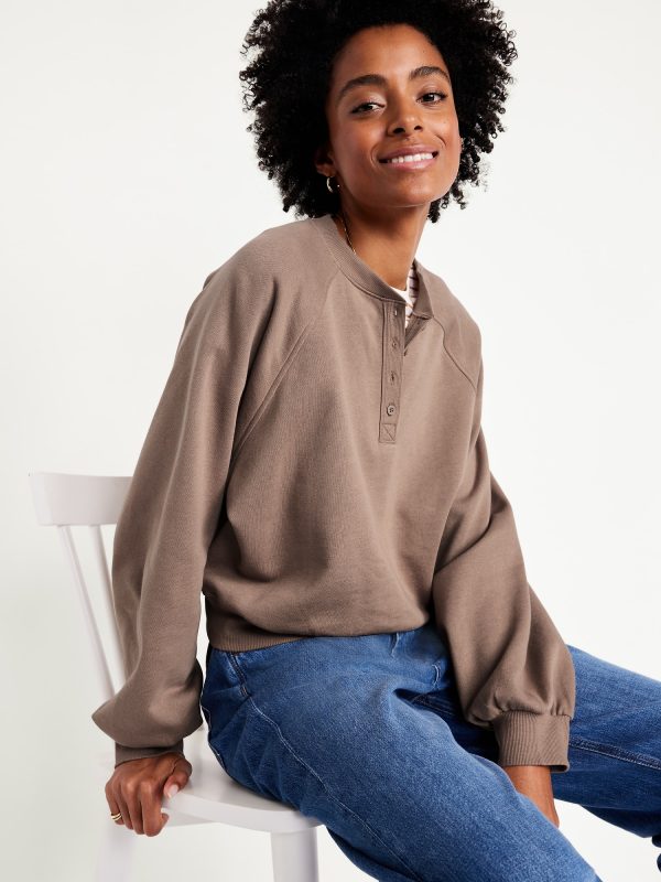 SoComfy Oversized Button-Front Sweatshirt: The perfect-weight, never-taking-this-off fleece.button-front crew neck, long blouson sleeves, rib-knit trim, pullover style, #764233