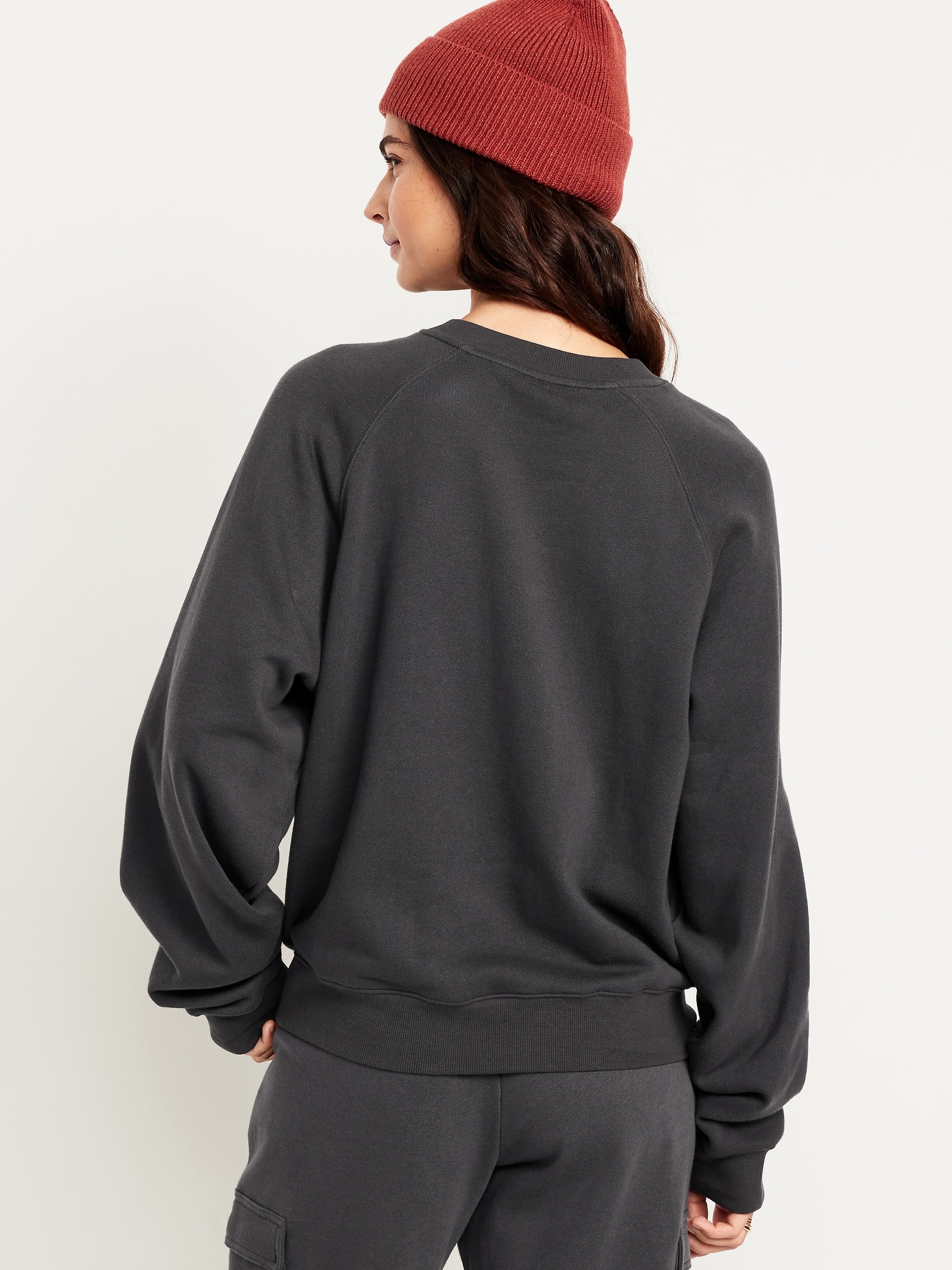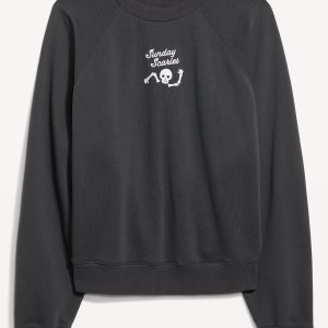 SoComfy Oversized Graphic Raglan Sweatshirt: The perfect-weight, never-taking-this-off fleece.embroidered floral accent, crew neck, long raglan sleeves, rib-knit trim, pullover style, #824100