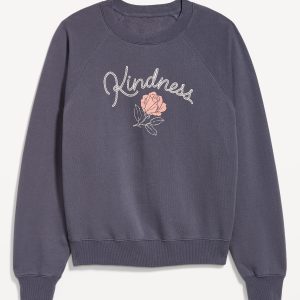 SoComfy Oversized Graphic Raglan Sweatshirt: The perfect-weight, never-taking-this-off fleece.embroidered floral accent, crew neck, long raglan sleeves, rib-knit trim, pullover style, #824100