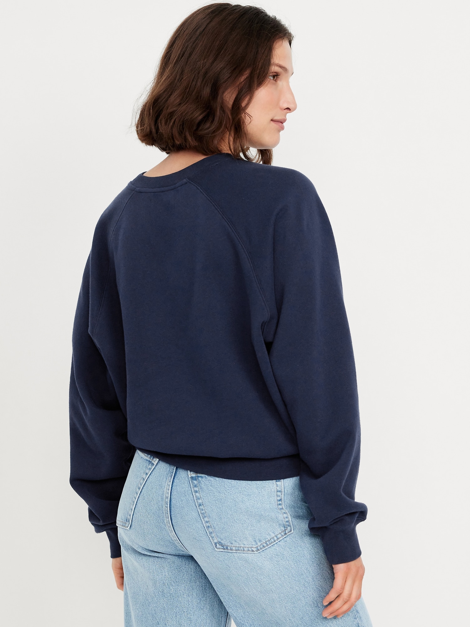SoComfy Oversized Graphic Raglan Sweatshirt: The perfect-weight, never-taking-this-off fleece.embroidered floral accent, crew neck, long raglan sleeves, rib-knit trim, pullover style, #824100