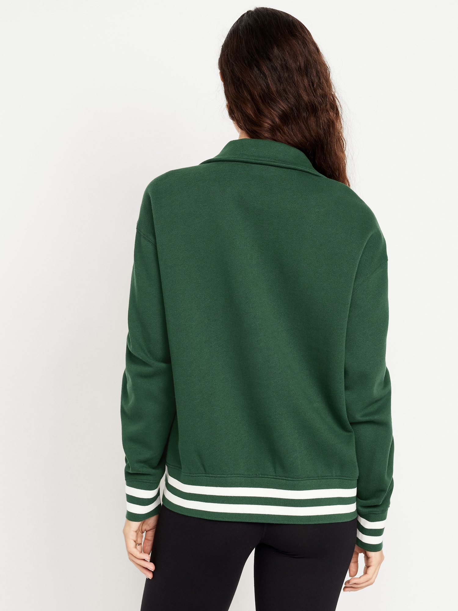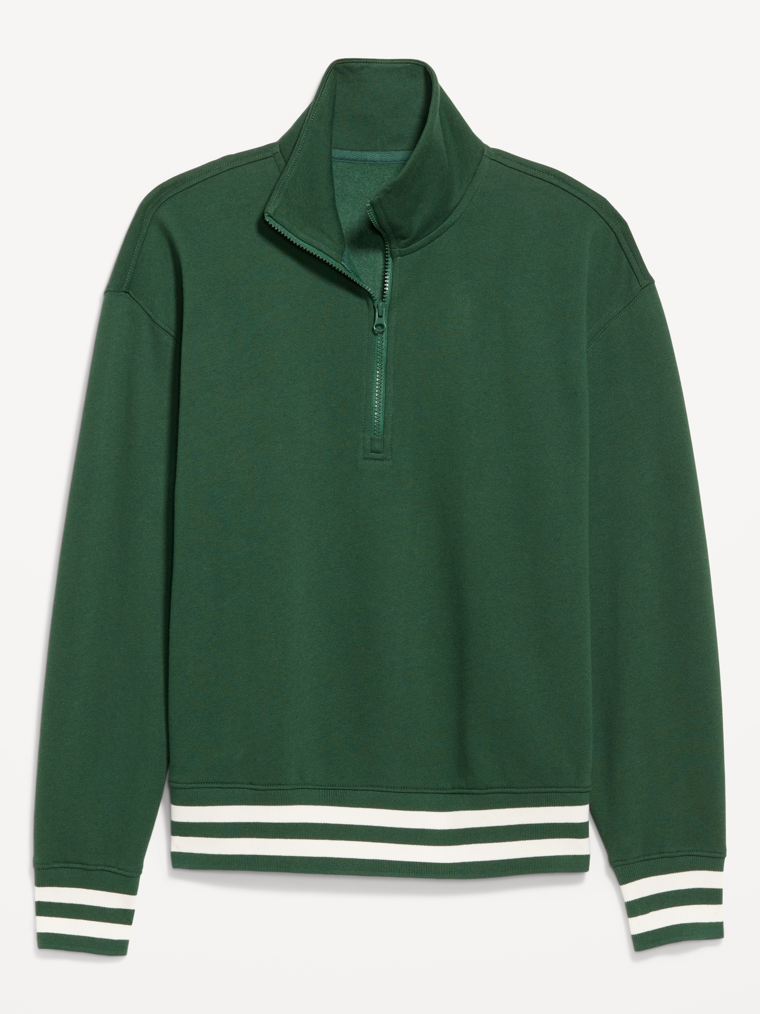 SoComfy Oversized Half-Zip Sweatshirt: The perfect-weight, never-taking-this-off fleece.mock neck, drop-shoulder sleeves, half-zip front, contrasting tipped trim, pullover style, #801579