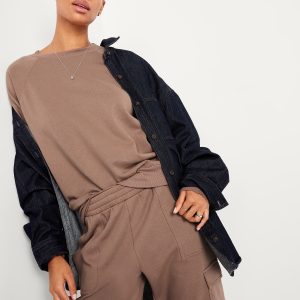 SoComfy Oversized Raglan Sweatshirt: The perfect-weight, never-taking-this-off fleece.embroidered floral accent, crew neck, long raglan sleeves, rib-knit trim, pullover style, #824100
