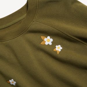 SoComfy Oversized Raglan Sweatshirt: The perfect-weight, never-taking-this-off fleece.embroidered floral accent, crew neck, long raglan sleeves, rib-knit trim, pullover style, #824100