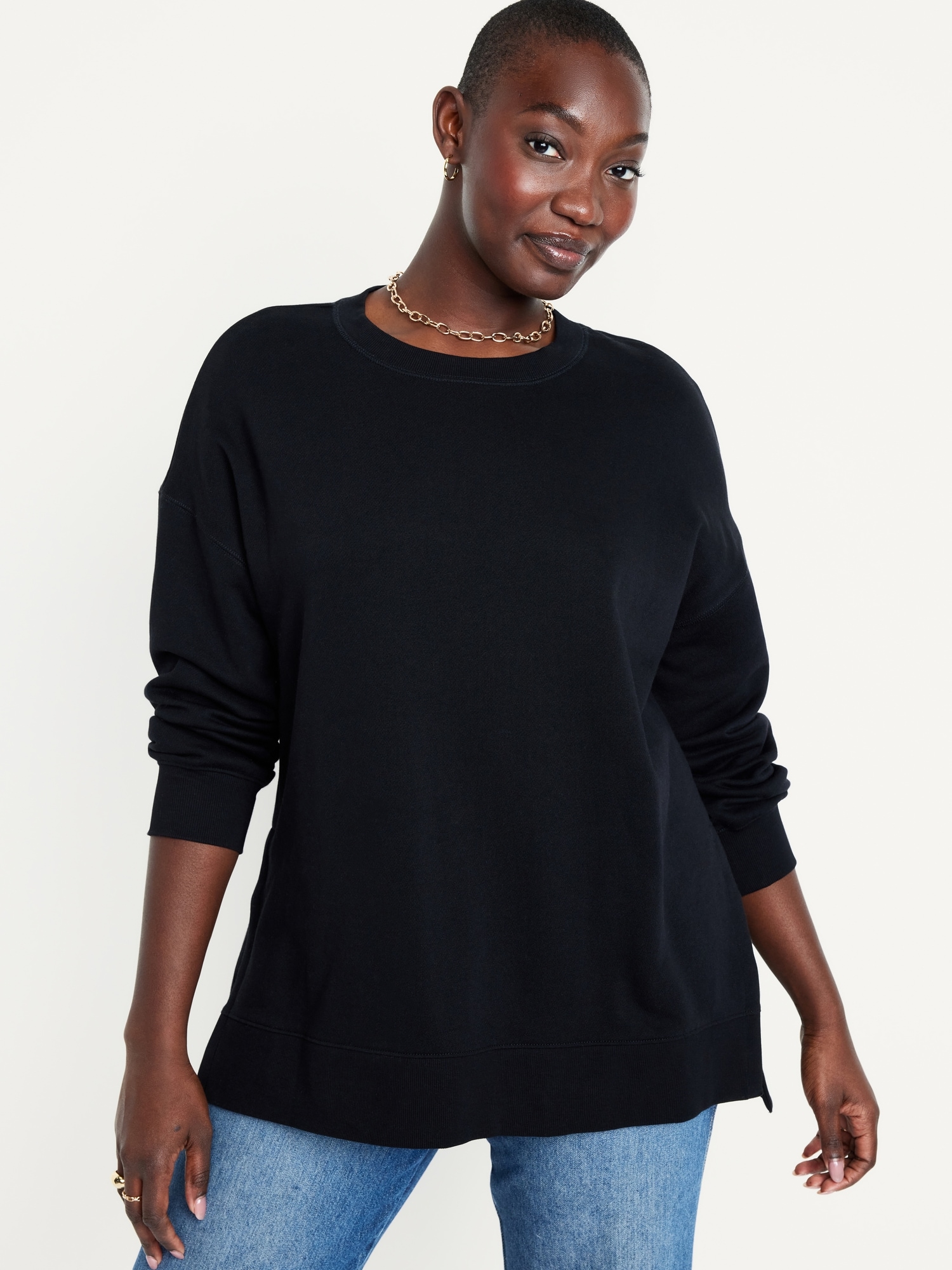 SoComfy Relaxed Tunic Sweatshirt: The perfect-weight, never-taking-this-off fleece.crew neck, drop-shoulder sleeves, vented sides, stepped hem, rib-knit trim, pullover style, #890649
